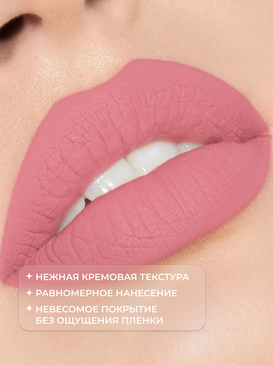 СохранитьПомада для губ матовая Latte Beauty "Ultimatte", розовое-облако, жидкая, с эффектом увлажнения, 35г, Италия, оттенок 02 интересное: