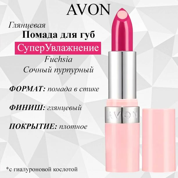 Купить AVON/Эйвон Глянцевая губная помада с гиалуроновой кислотой "СуперУвлажнение" Оттенок: Fuchsia Сочный пурпурный