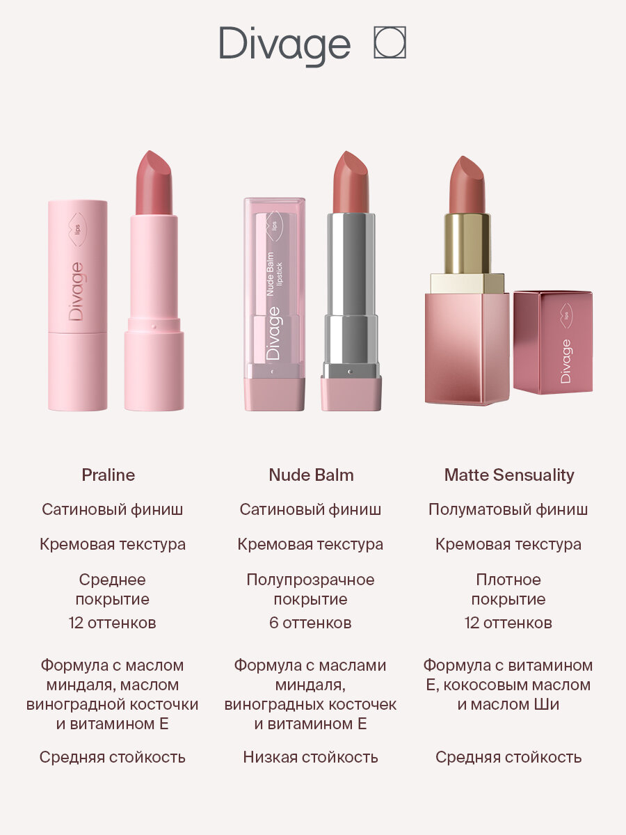 Ниже Вы можете прочитать отзывы на Divage Помада для губ Matte Sensuality Lipstick Тон 06 персиково-розовый, ознакомится с подробными характеристиками, посмотреть интересные обзоры и фотографии на Divage Помада для губ Matte Sensuality Lipstick Тон 06 персиково-розовый.