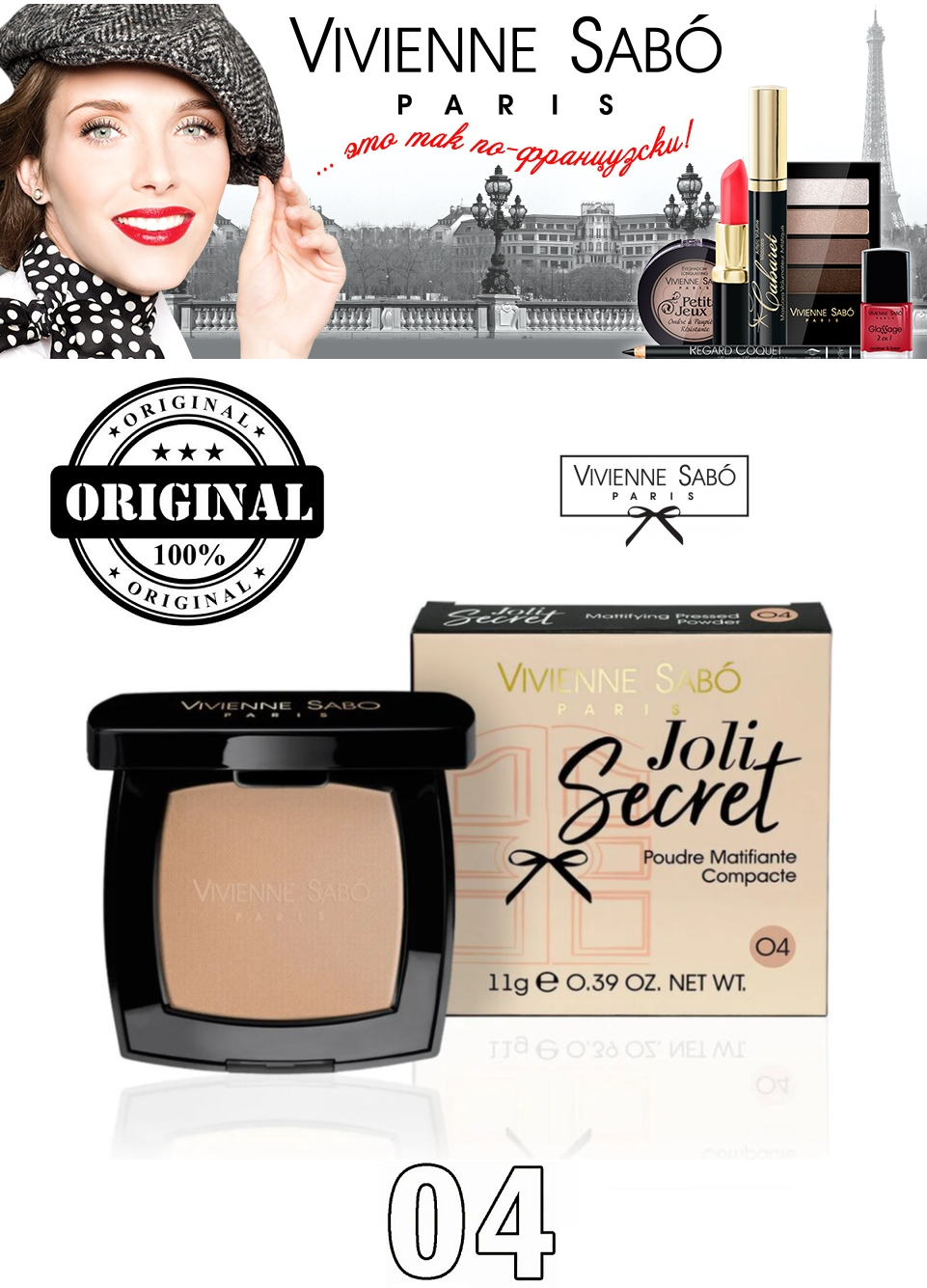 Купить Пудра компактная матирующая VIVIENNE SABO Joli Secret, тон 04
