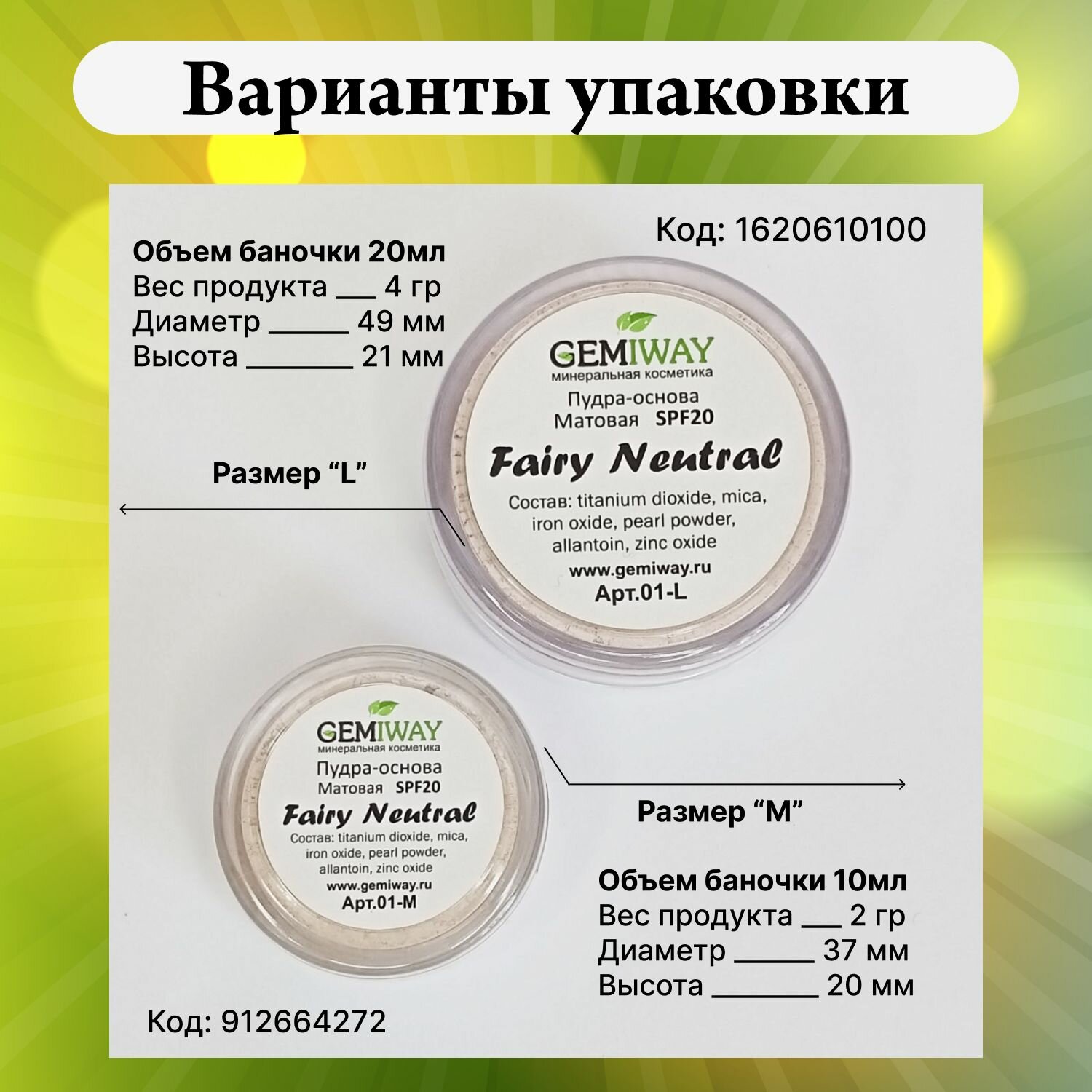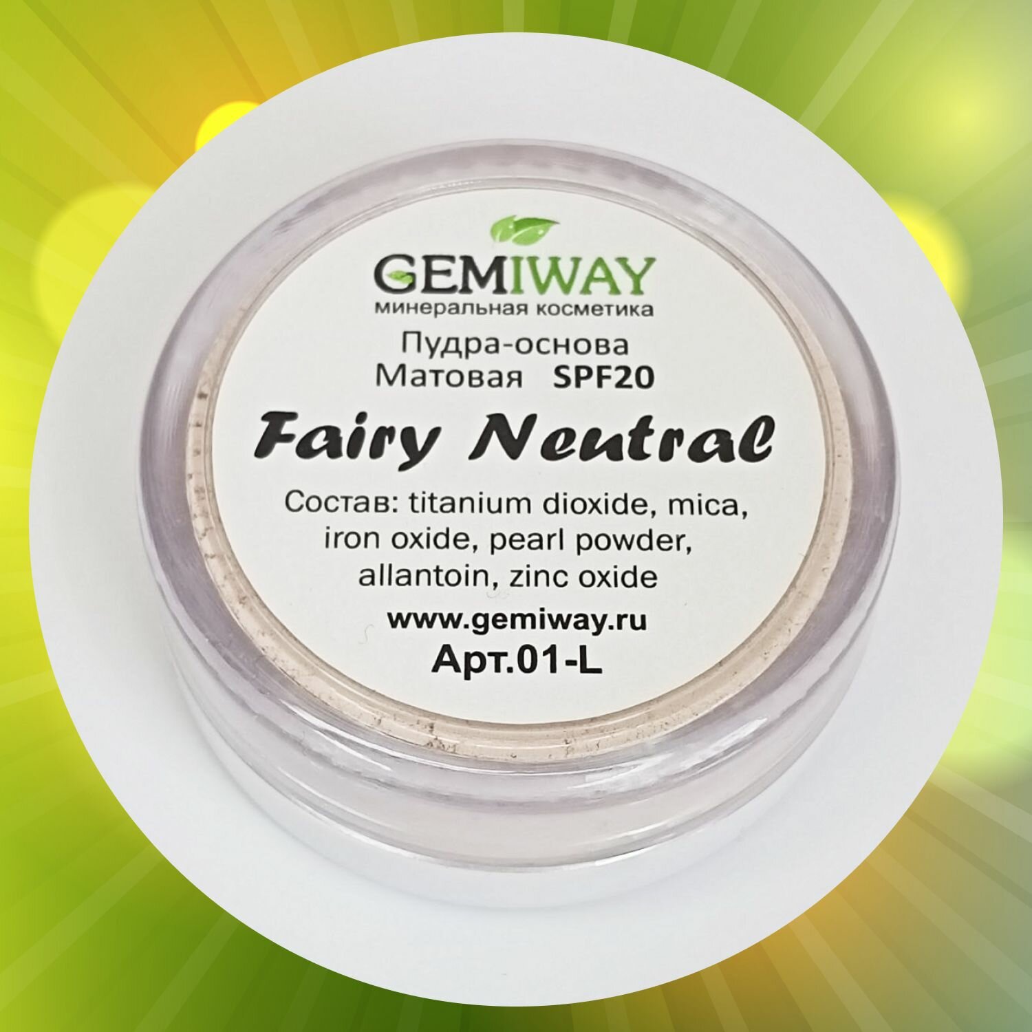 Купить Пудра-основа минеральная "Fairy Neutral" GEMIWAY (SPF 20) 20 мл / 4 г . Рассыпчатая, натуральная, матовая пудра для лица