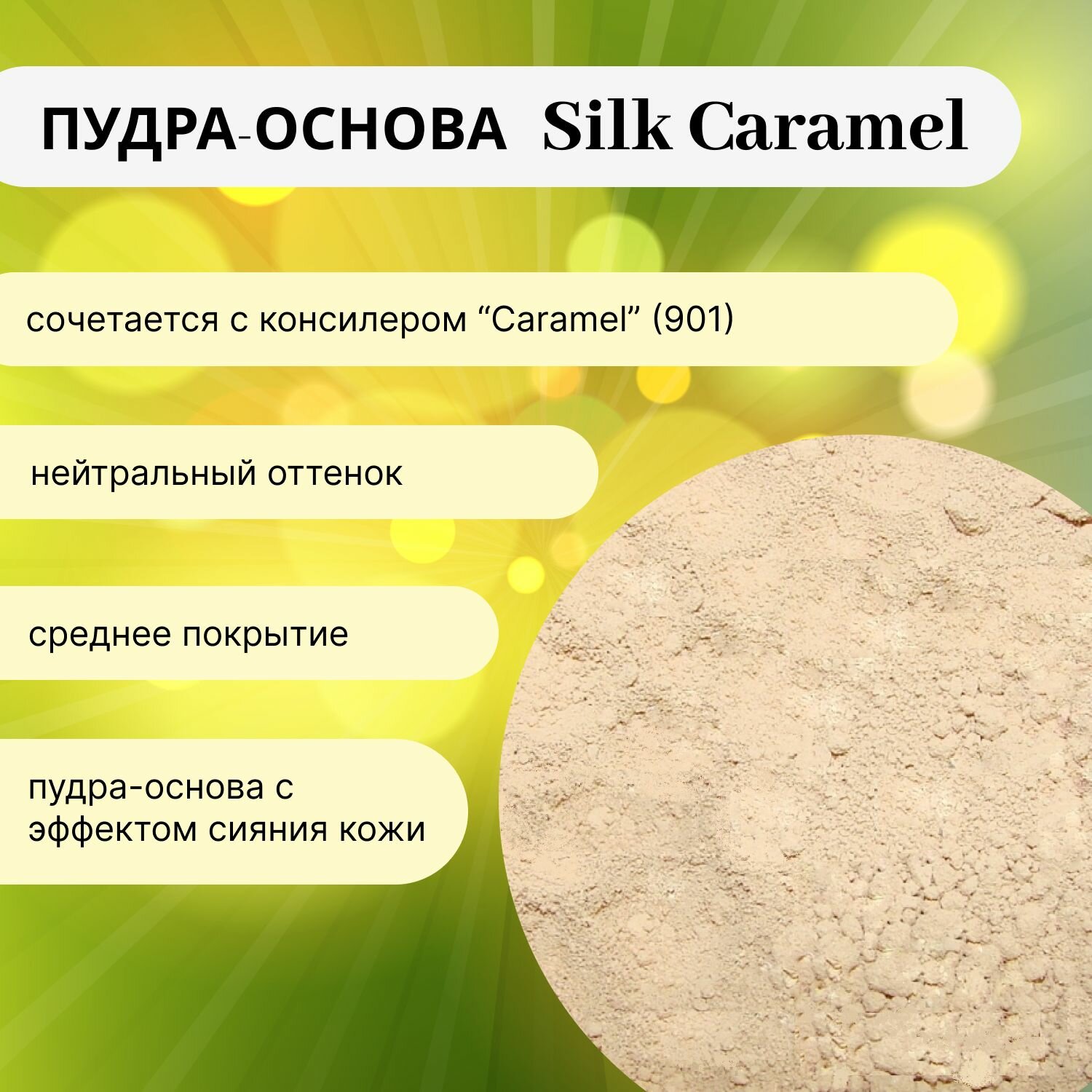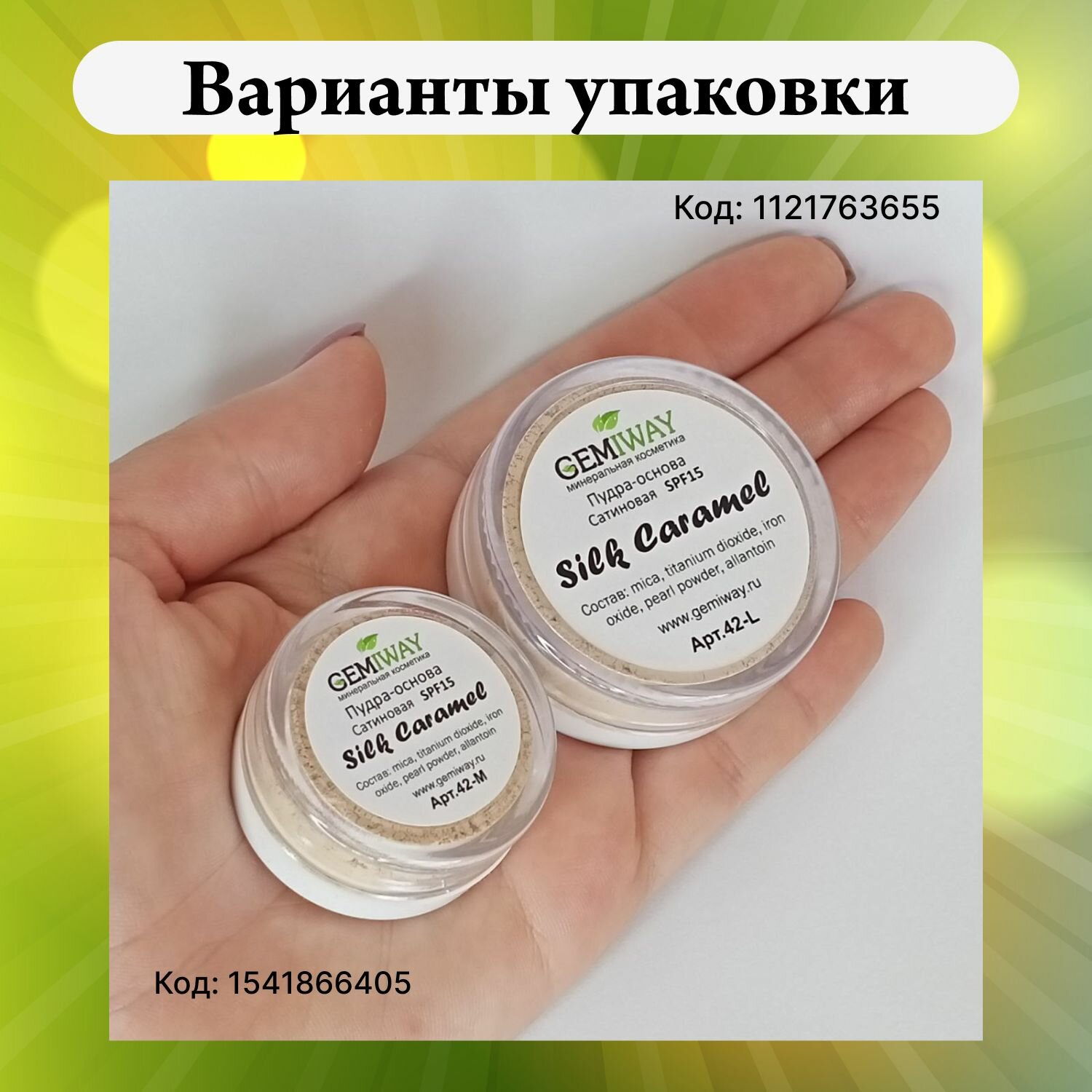 Купить Пудра-основа минеральная Сатиновая "Silk Caramel" SPF 15. GEMIWAY 20мл / 4г . 100% натуральная пудра
