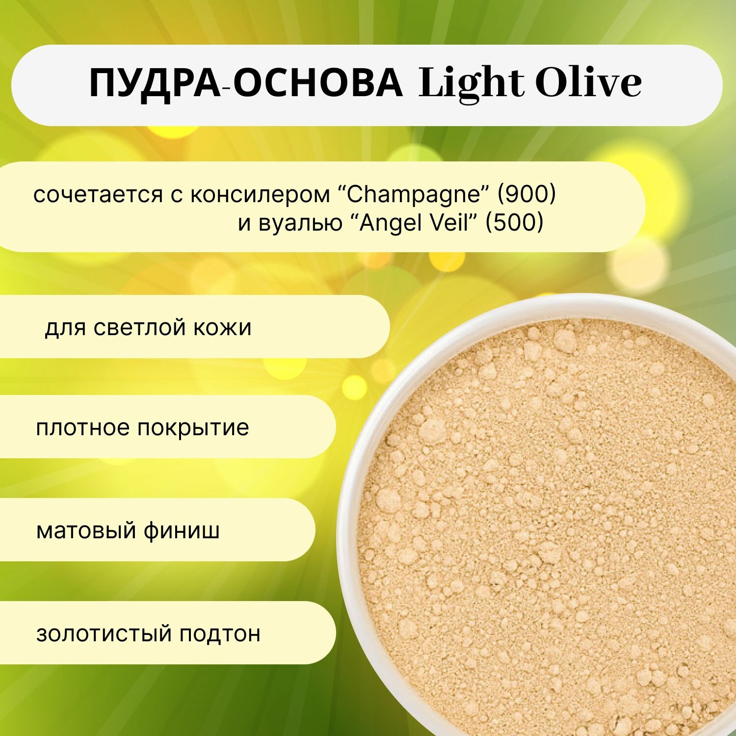 Пудра-основа матовая минеральная "Light Olive" GEMIWAY (SPF 20) 10мл / 2г . Рассыпчатая, натуральная пудра для лица