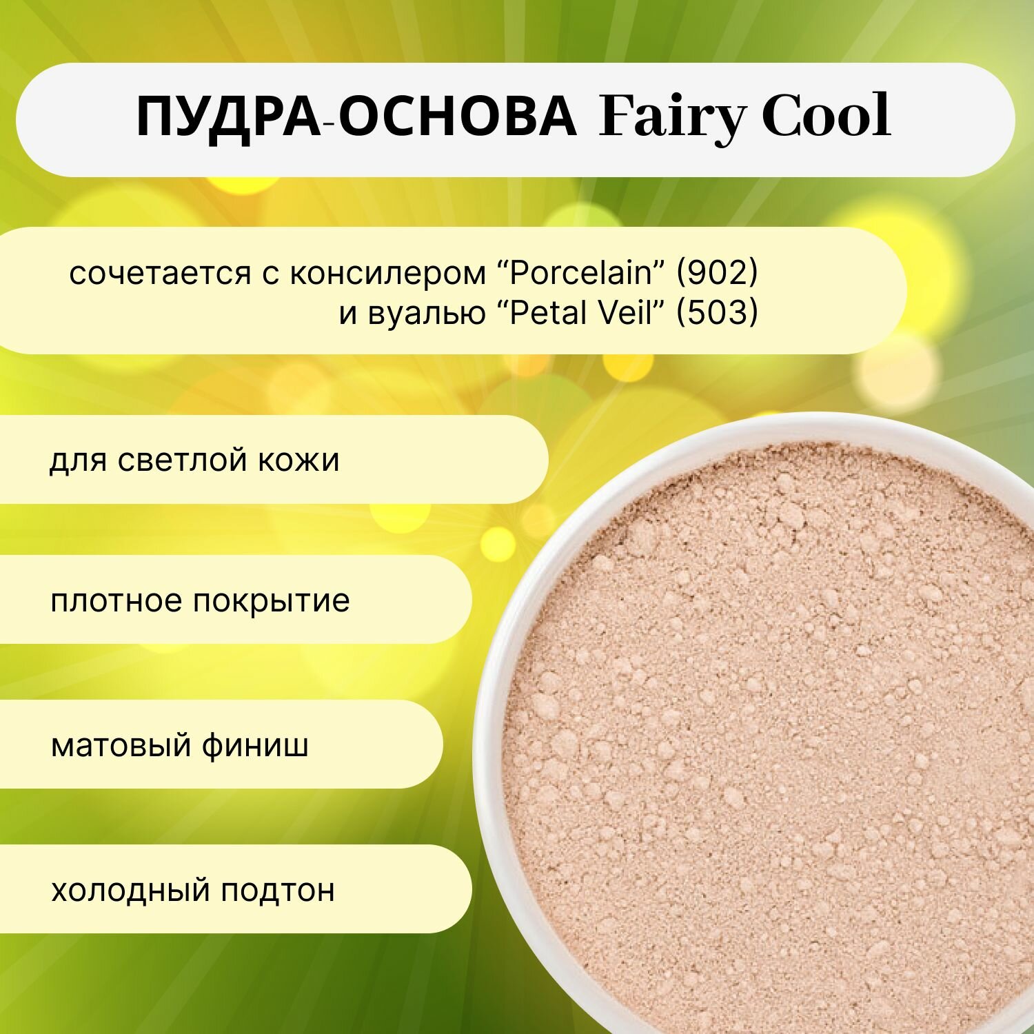 Пудра-основа минеральная "Light Cool" GEMIWAY (SPF 20) 10мл / 2г . Матовая, рассыпчатая, натуральная пудра для лица