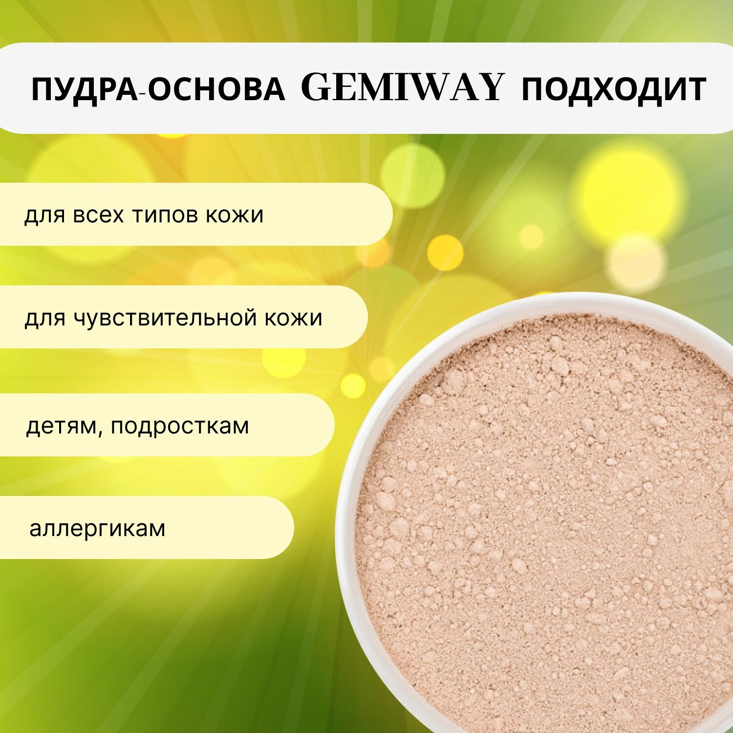 Пудра-основа Матовая минеральная "Medium Cool" GEMIWAY 20мл / 4 г . Рассыпчатая натуральная пудра для лица