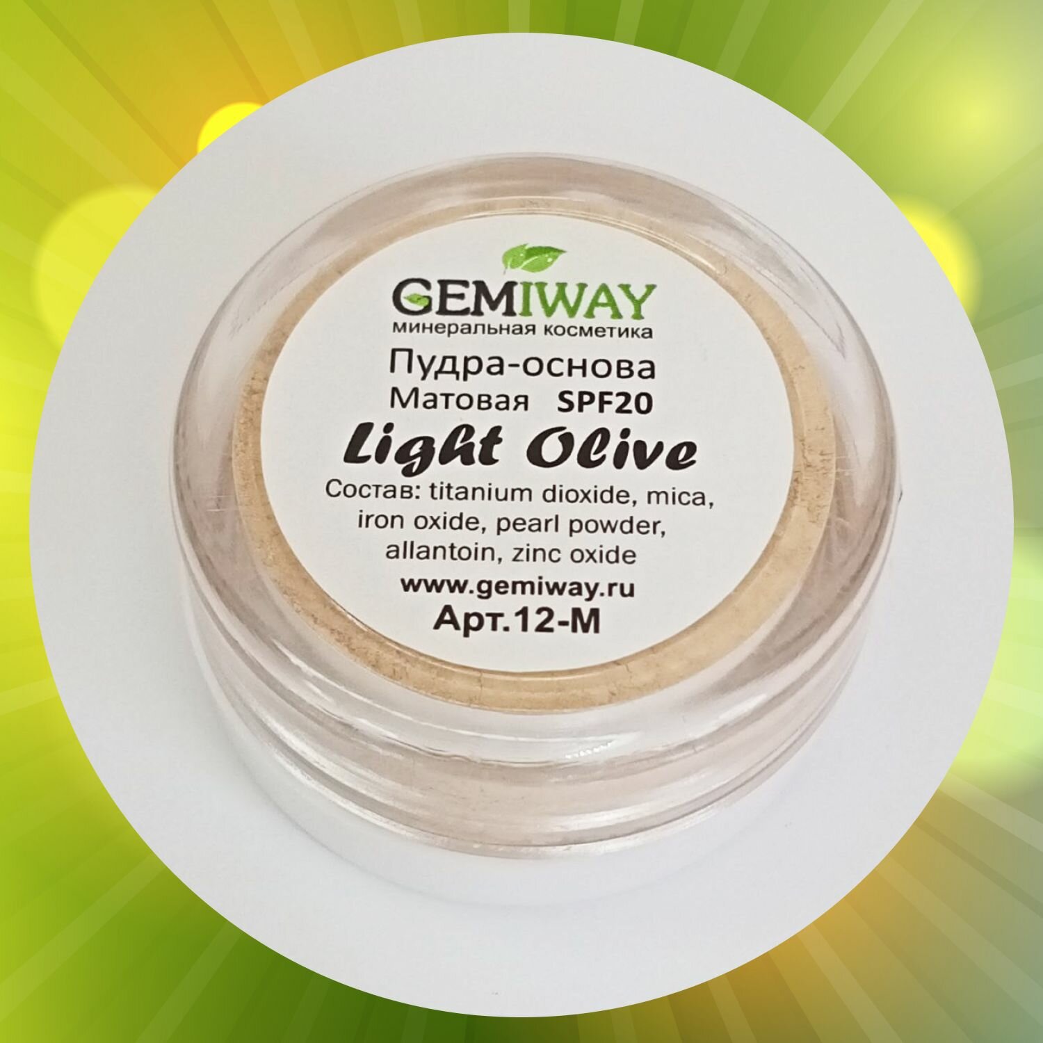 Купить Пудра-основа матовая минеральная "Light Olive" GEMIWAY (SPF 20) 10мл / 2г . Рассыпчатая, натуральная пудра для лица