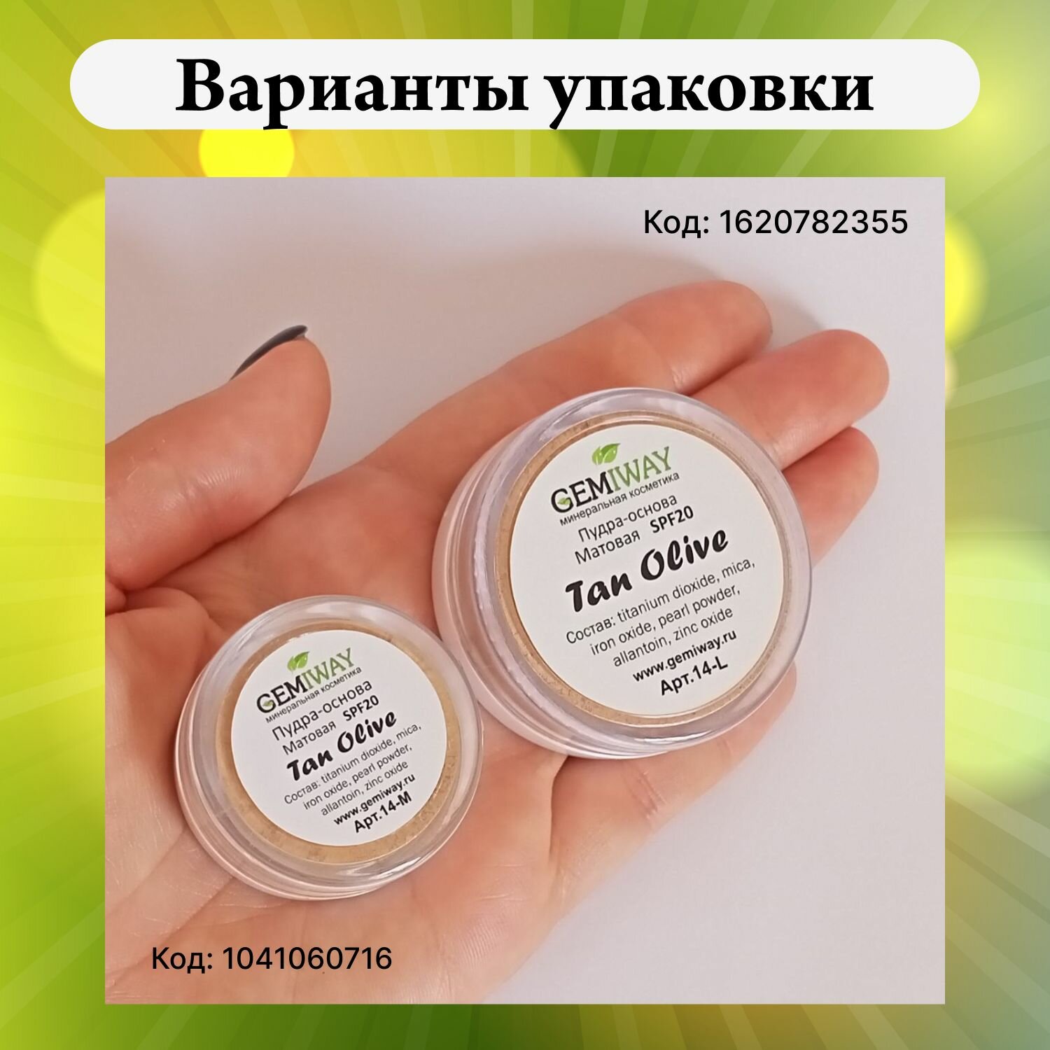 СохранитьПудра-основа минеральная Матовая "Tan Olive" GEMIWAY 10мл / 2г ( SPF 20 ). Рассыпчатая, натуральная пудра для лица интересное: