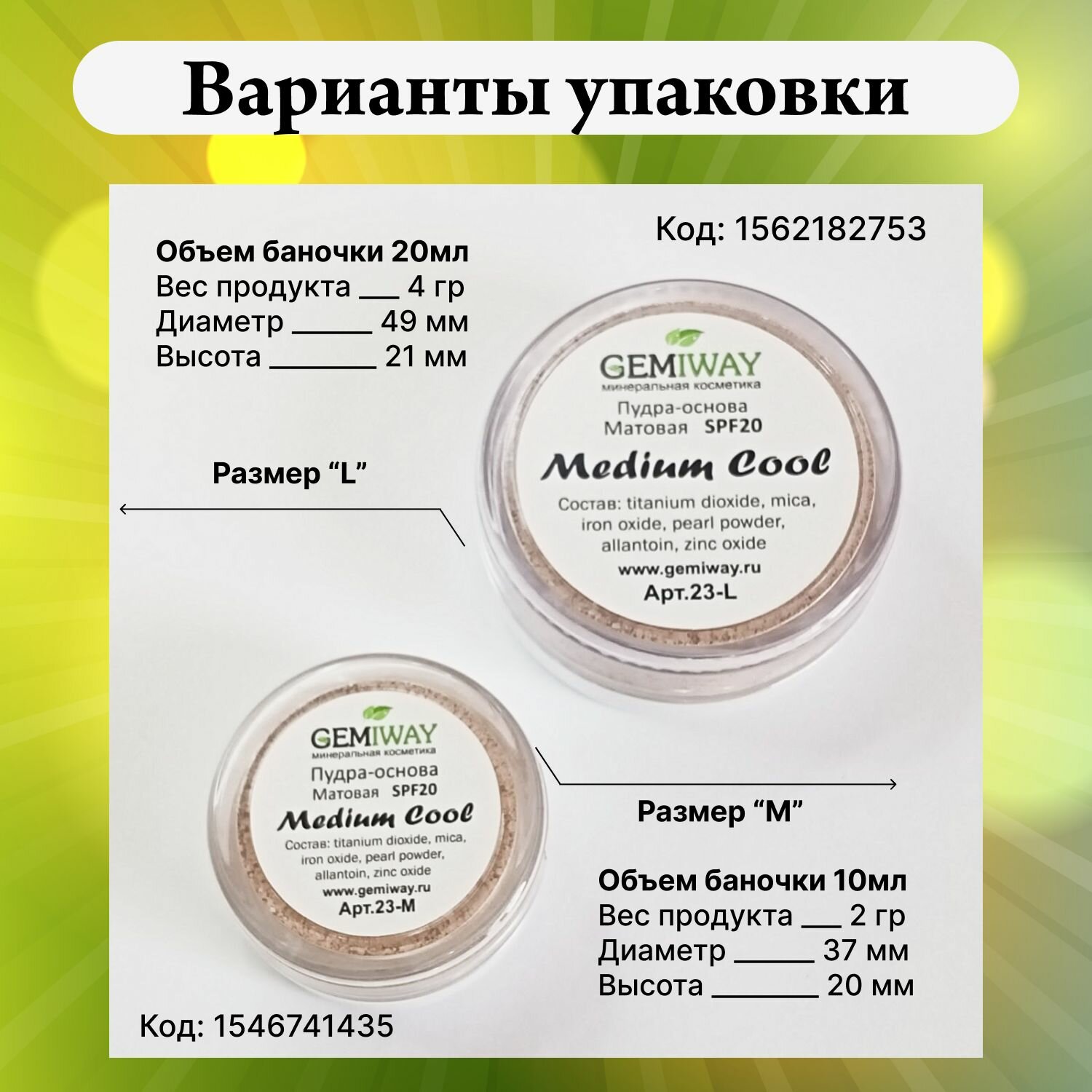 Купить Пудра-основа Матовая минеральная "Medium Cool" GEMIWAY 20мл / 4 г . Рассыпчатая натуральная пудра для лица