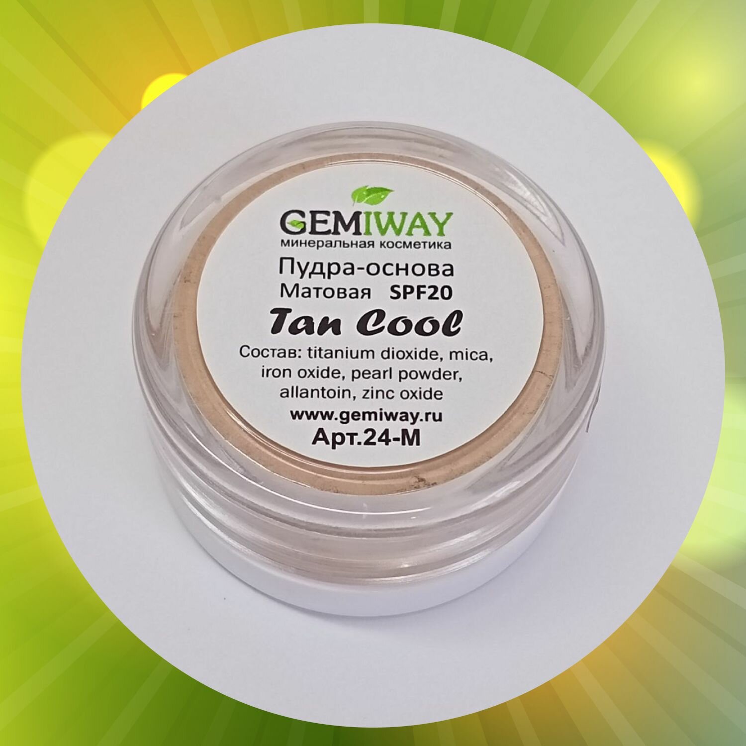 Пудра-основа Матовая минеральная "Tan Neutral" GEMIWAY 20мл / 4 г . SPF 20 . Рассыпчатая, натуральная пудра для лица