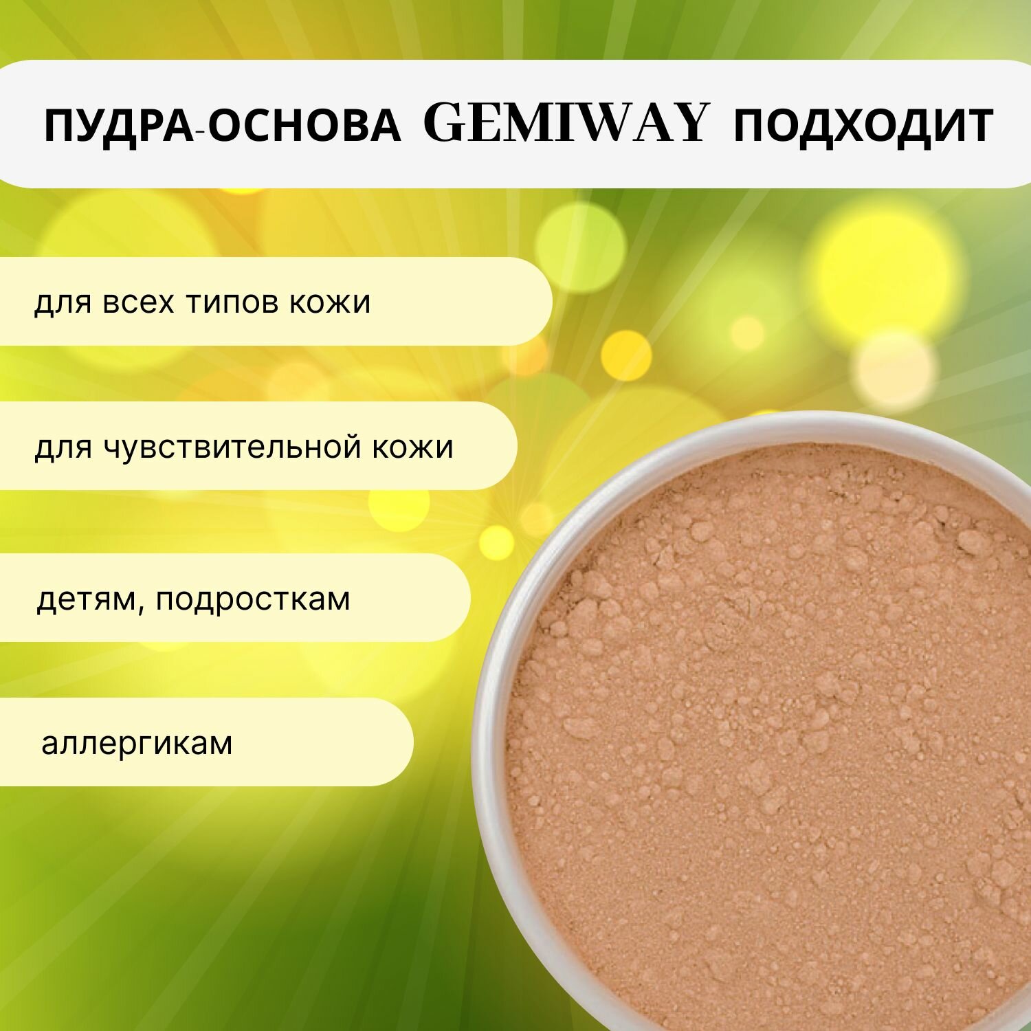 СохранитьПудра-основа Матовая минеральная "Tan Cool" GEMIWAY 10мл / 2г . Рассыпчатая, натуральная пудра для лица интересное: