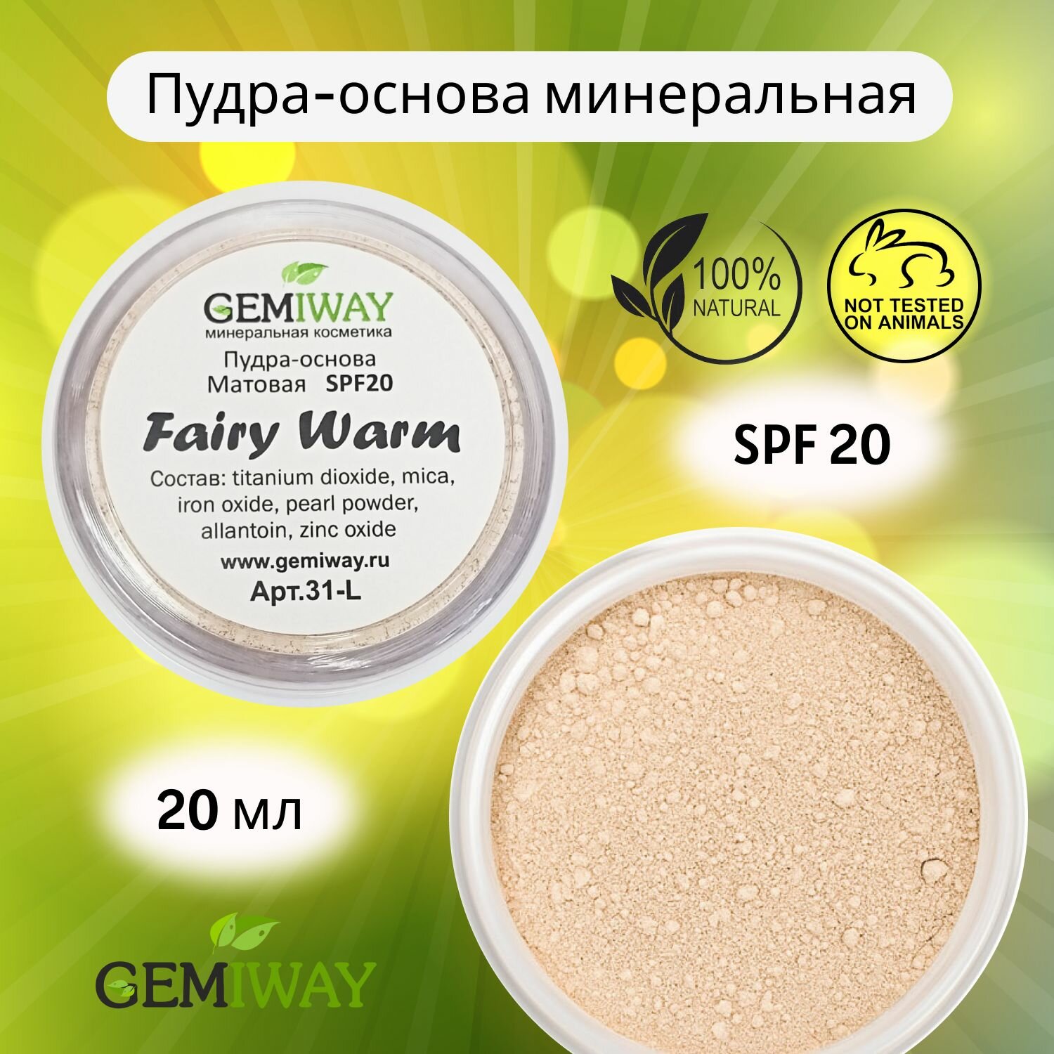 Пудра-основа минеральная "Fairy Warm" GEMIWAY (SPF 20) 10мл / 2г . Рассыпчатая, натуральная, матовая пудра для лица