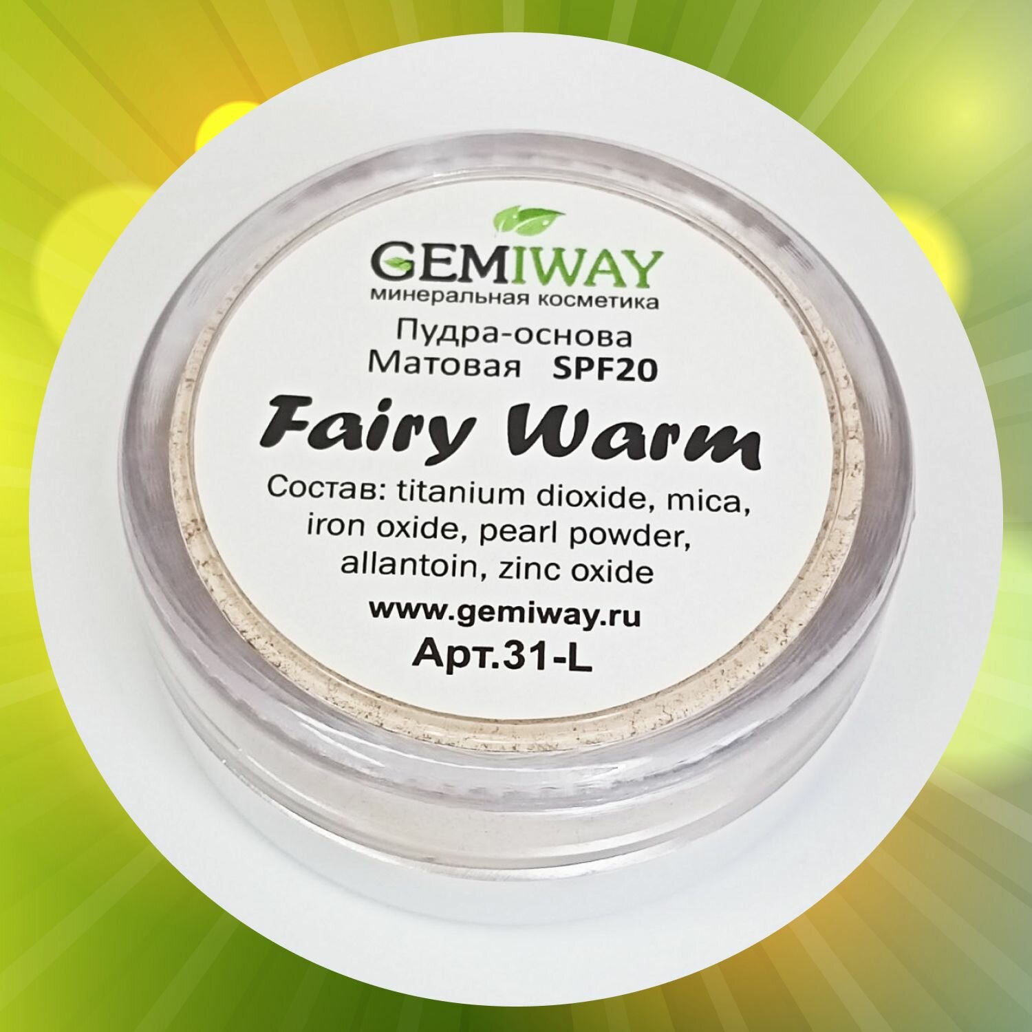 СохранитьПудра-основа минеральная "Fairy Warm" GEMIWAY (SPF 20) 20 мл / 4 г . Рассыпчатая, натуральная, матовая пудра для лица интересное:
