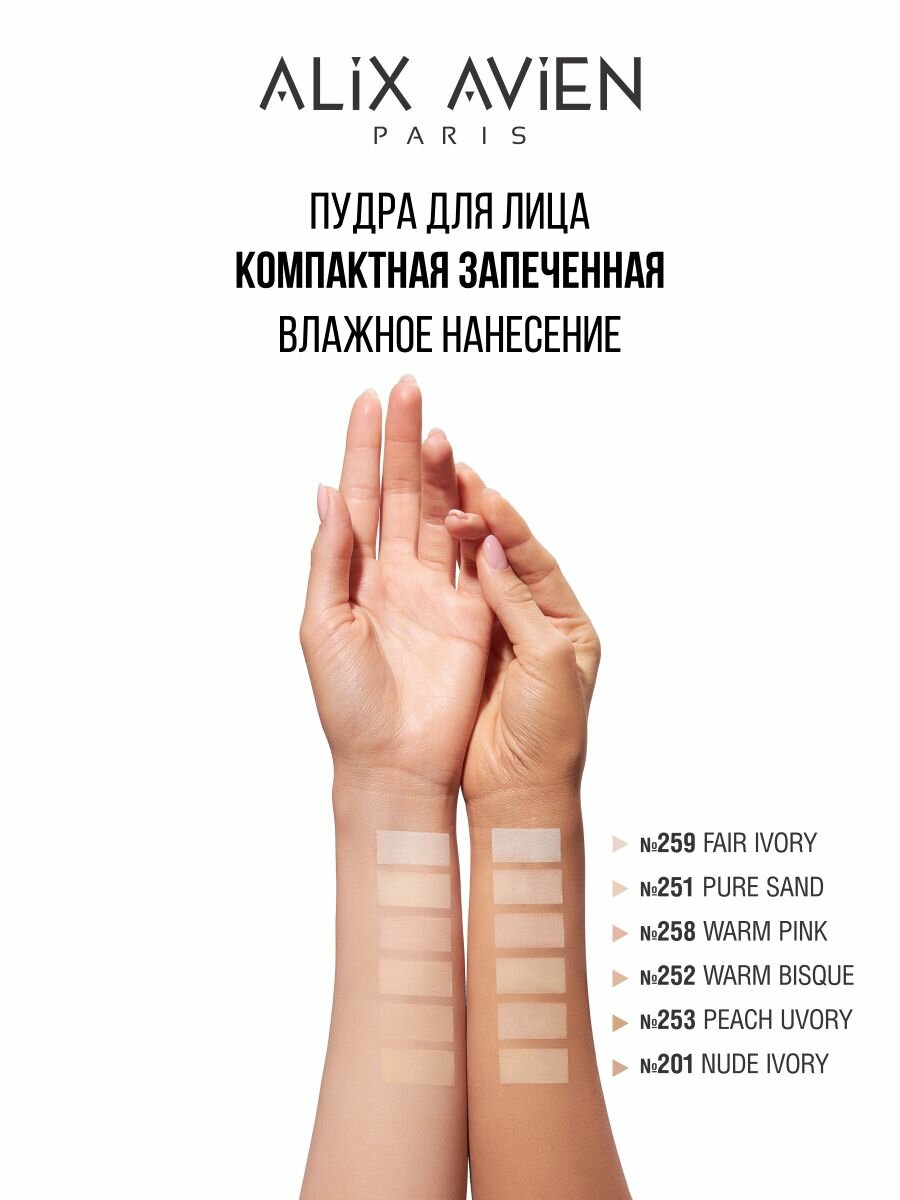 Пудра для лица ALIX AVIEN тон 252 с зеркалом, матирующая, запеченная, палетка интересное: