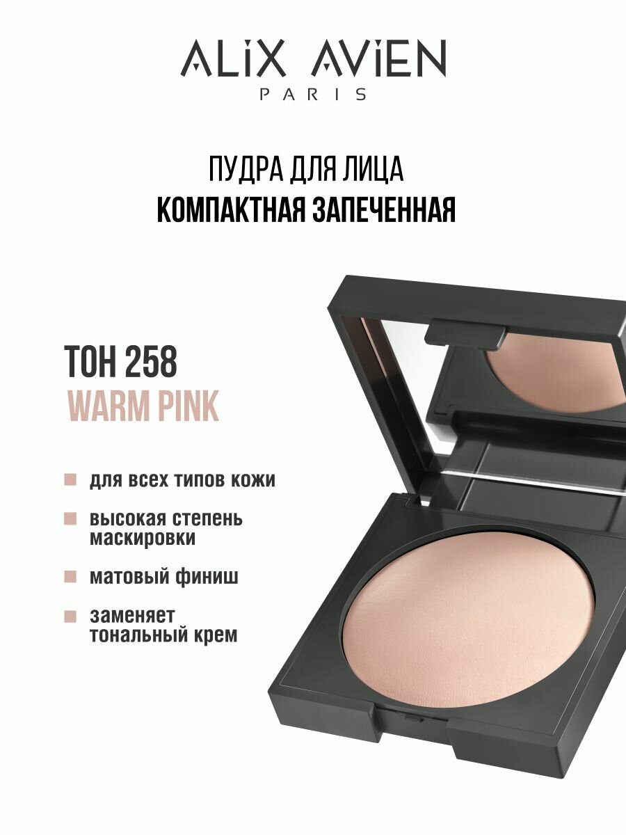 Пудра для лица ALIX AVIEN тон 258 с зеркалом, матирующая, запеченная, палетка интересное: