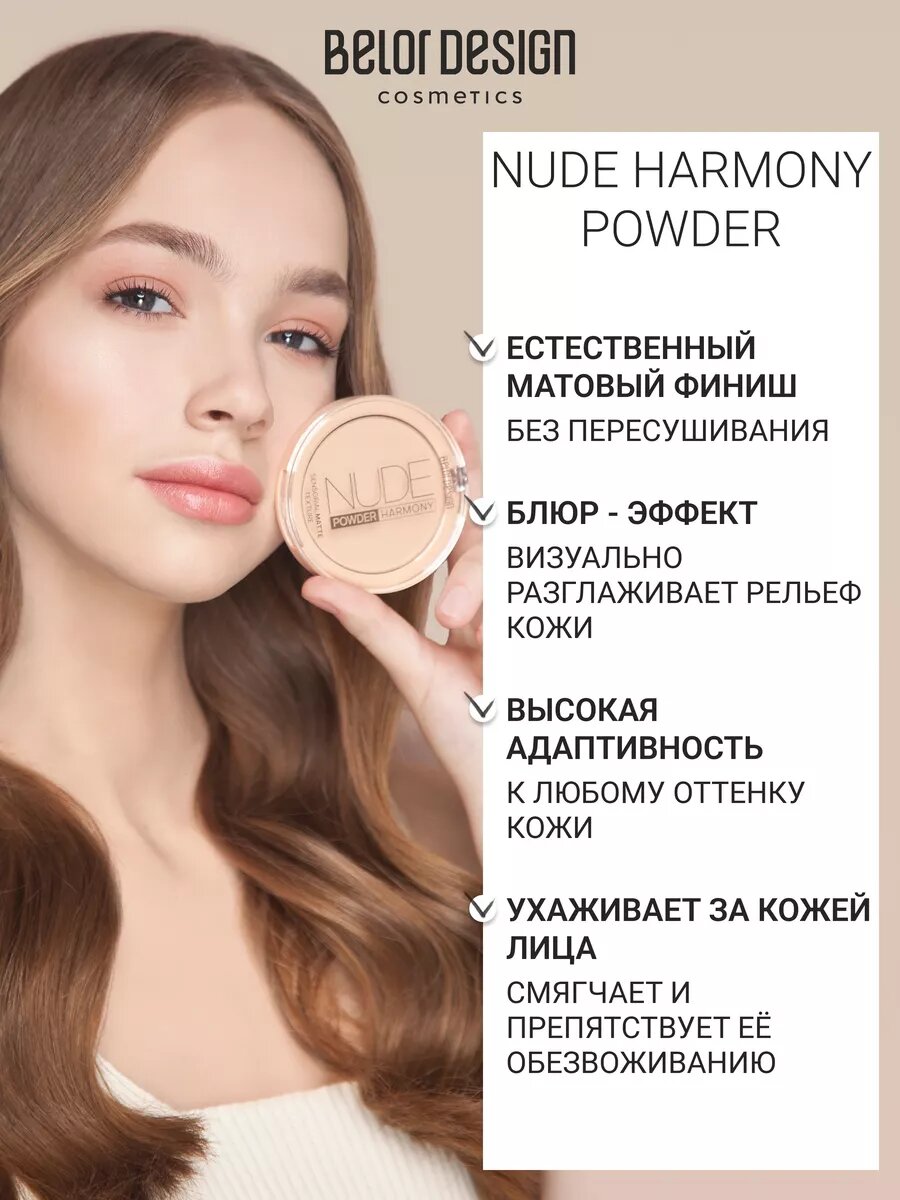 Пудра Belor Design Nude Harmony 2 Natural, для всех типов кожи, бежевая, 9 г интересное: