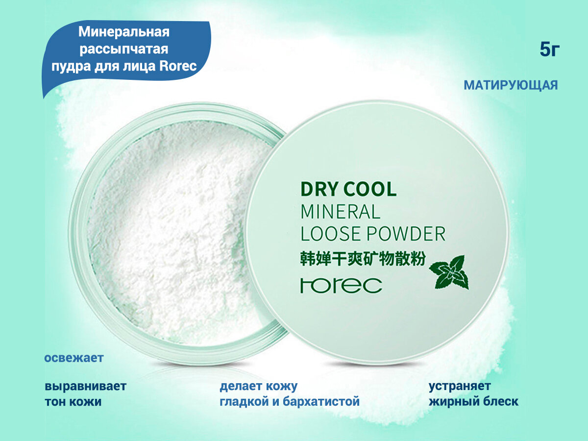 Минеральная бесцветная рассыпчатая пудра для лица Rorec"Mineral Loose" матирующий эффект 5 гр. интересное: