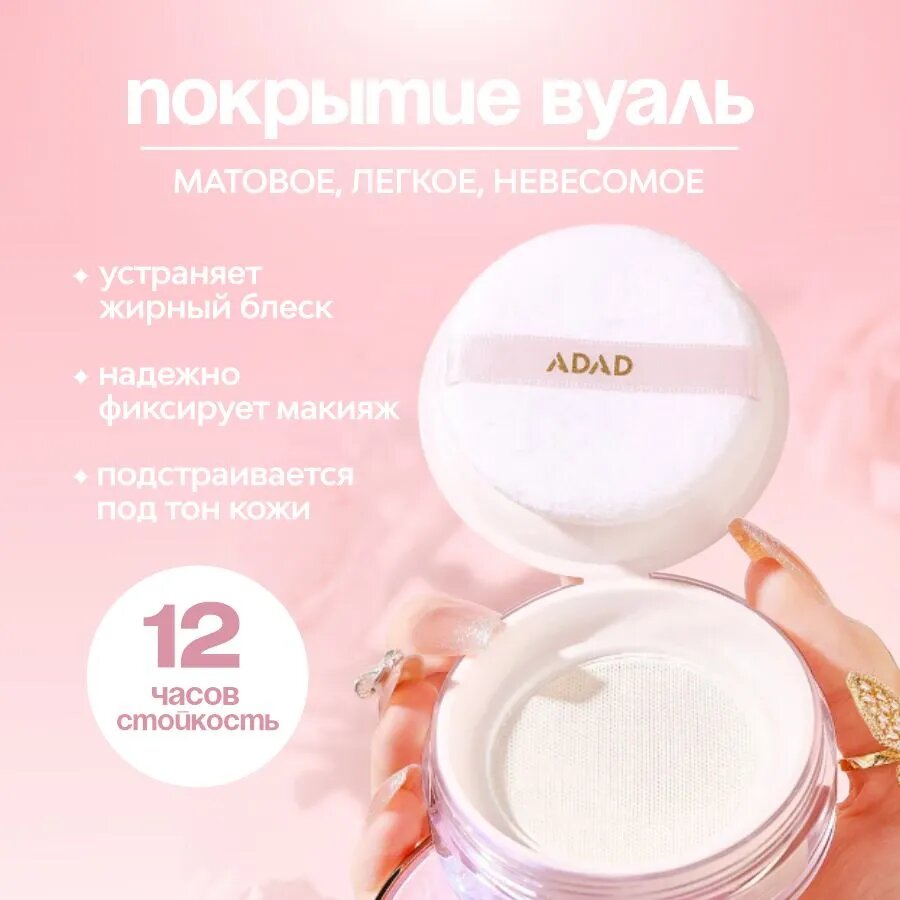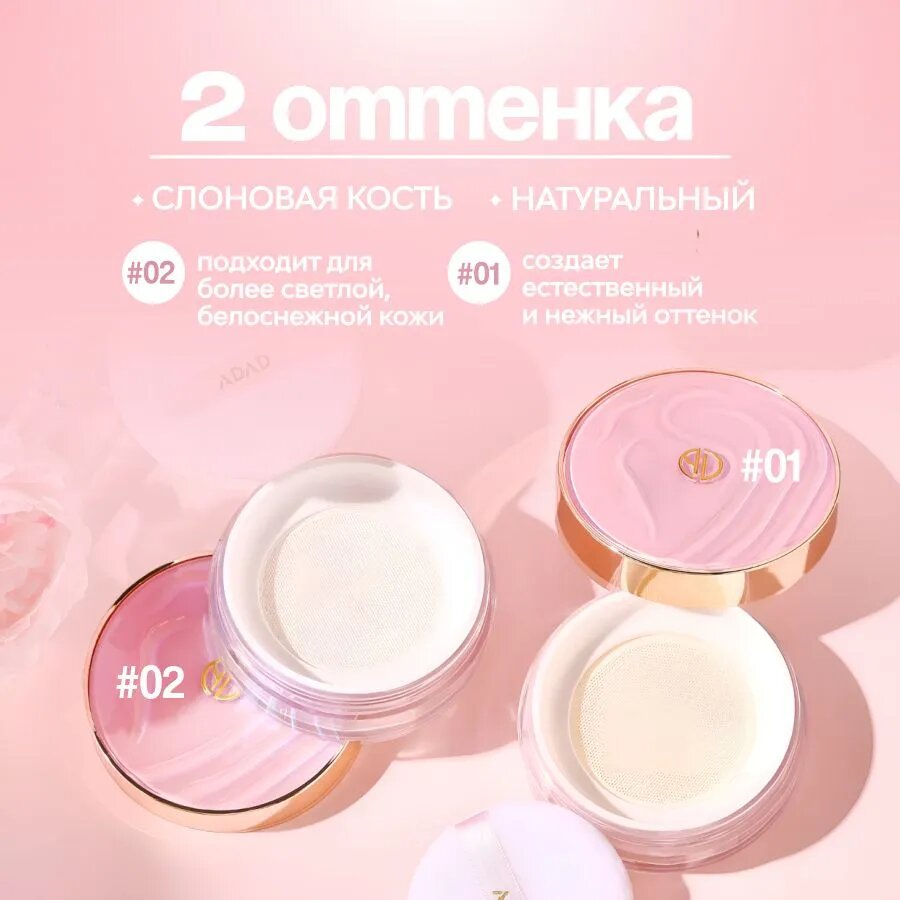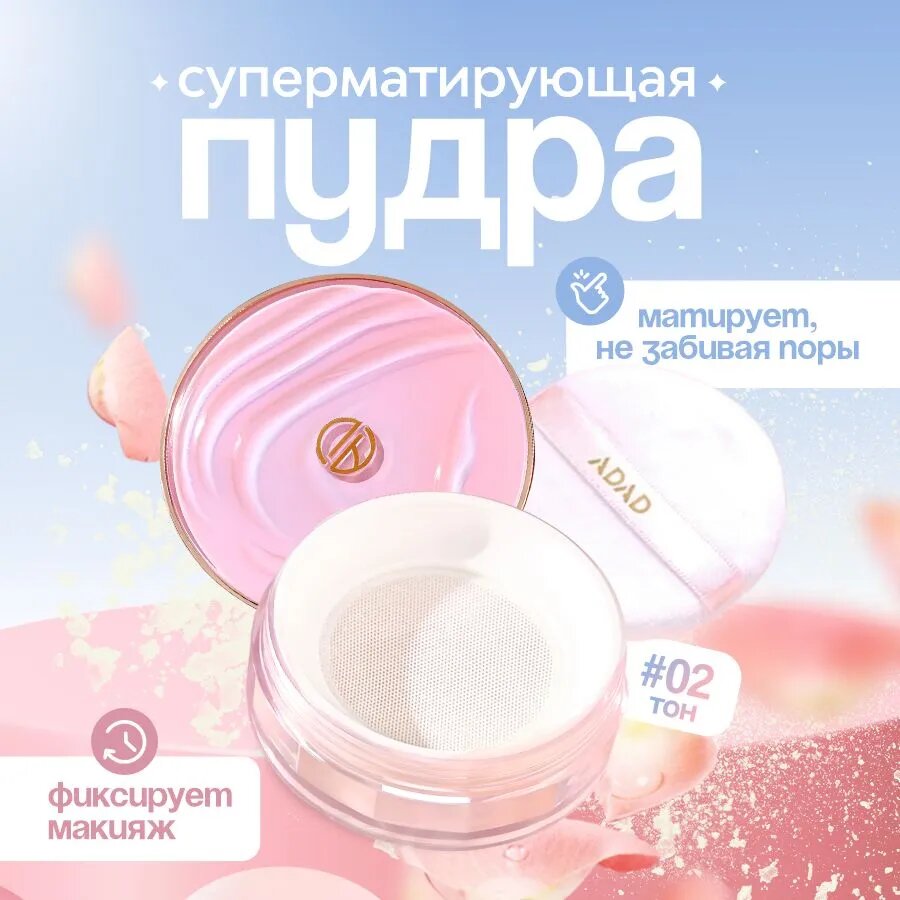Рассыпчатая матирующая пудра для лица. Тон #02, ADAD, 10 г. интересное: