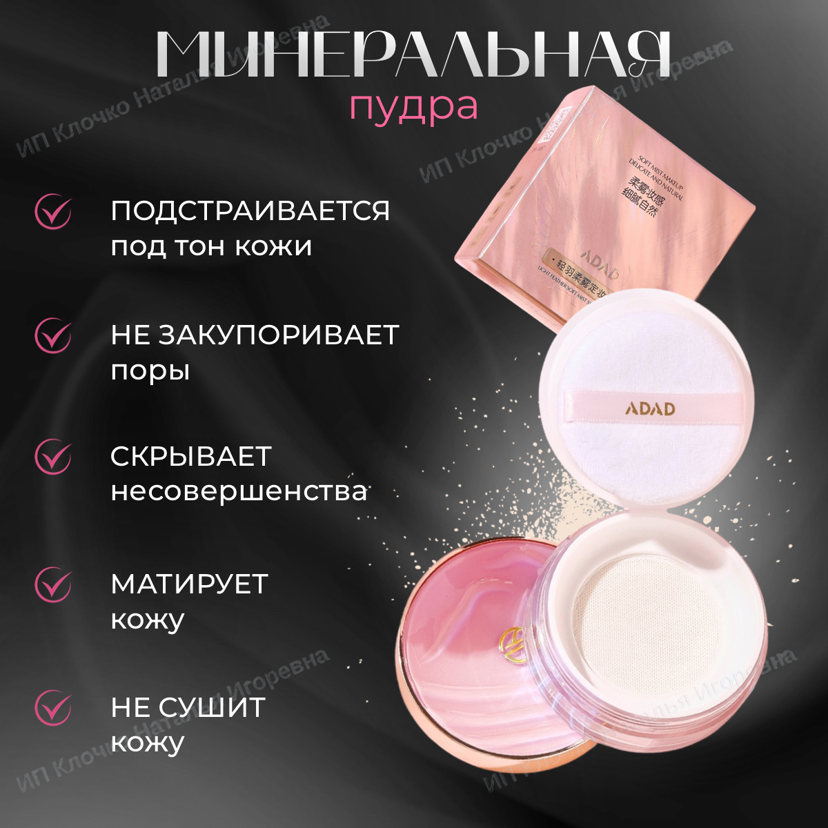 Рассыпчатая матирующая пудра для лица тон #01, ADAD, 10 г. интересное: