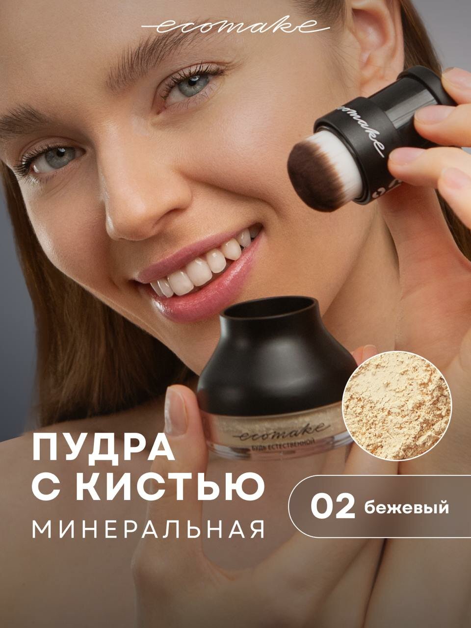 Пудра для лица минеральная матирующая рассыпчатая с кистью. оттенок 02 Бежевый интересное: