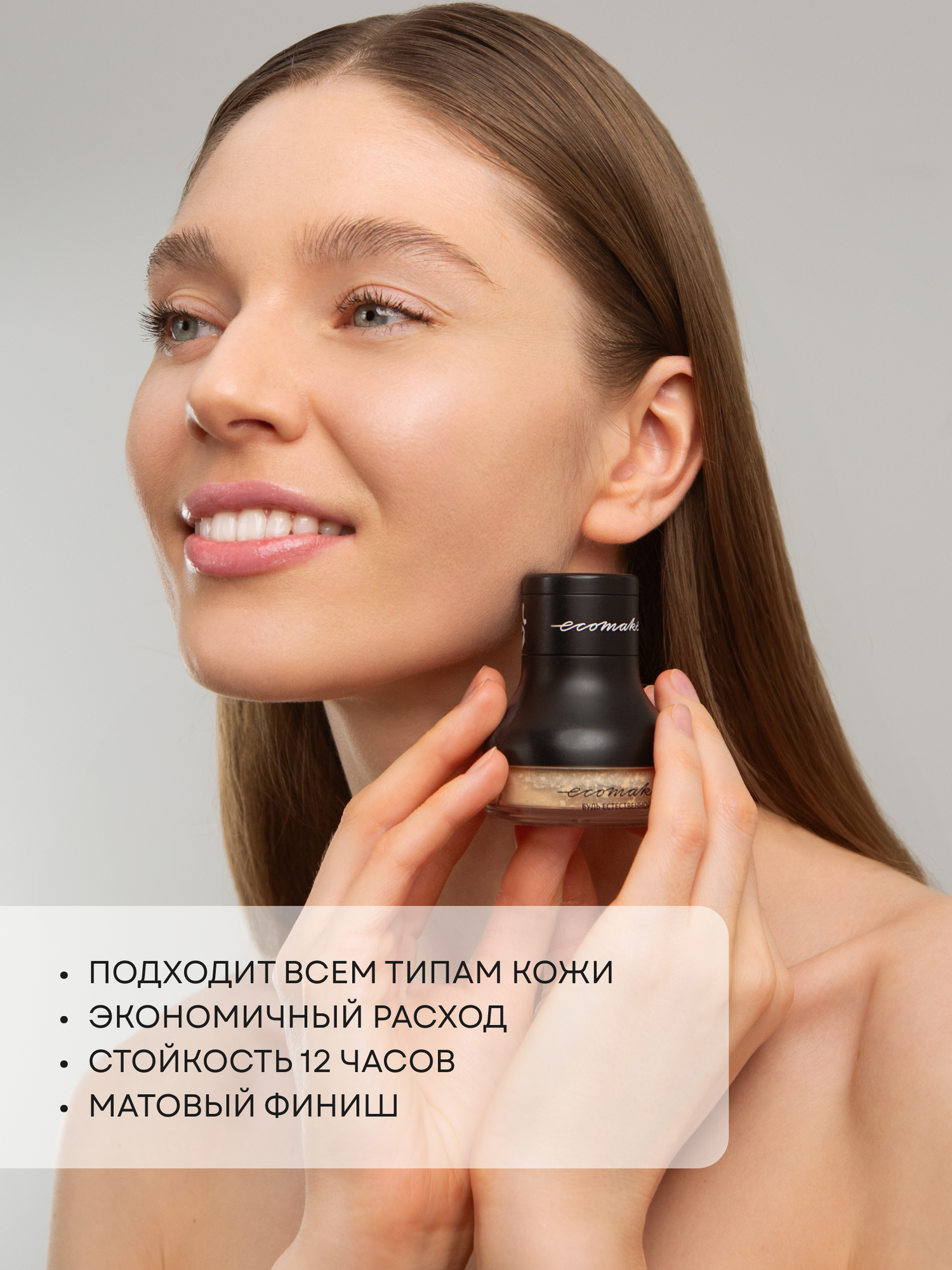 Пудра для лица минеральная матирующая рассыпчатая с кистью, оттенок 01 Слоновая кость интересное:
