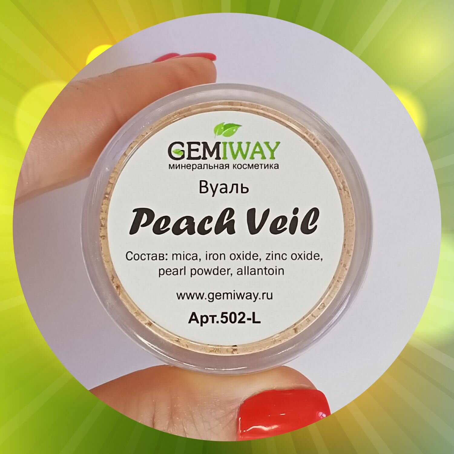 Вуаль минеральная "Peach Veil" GEMIWAY 10мл / 1,75 гр . Натуральная рассыпчатая финишная пудра для лица