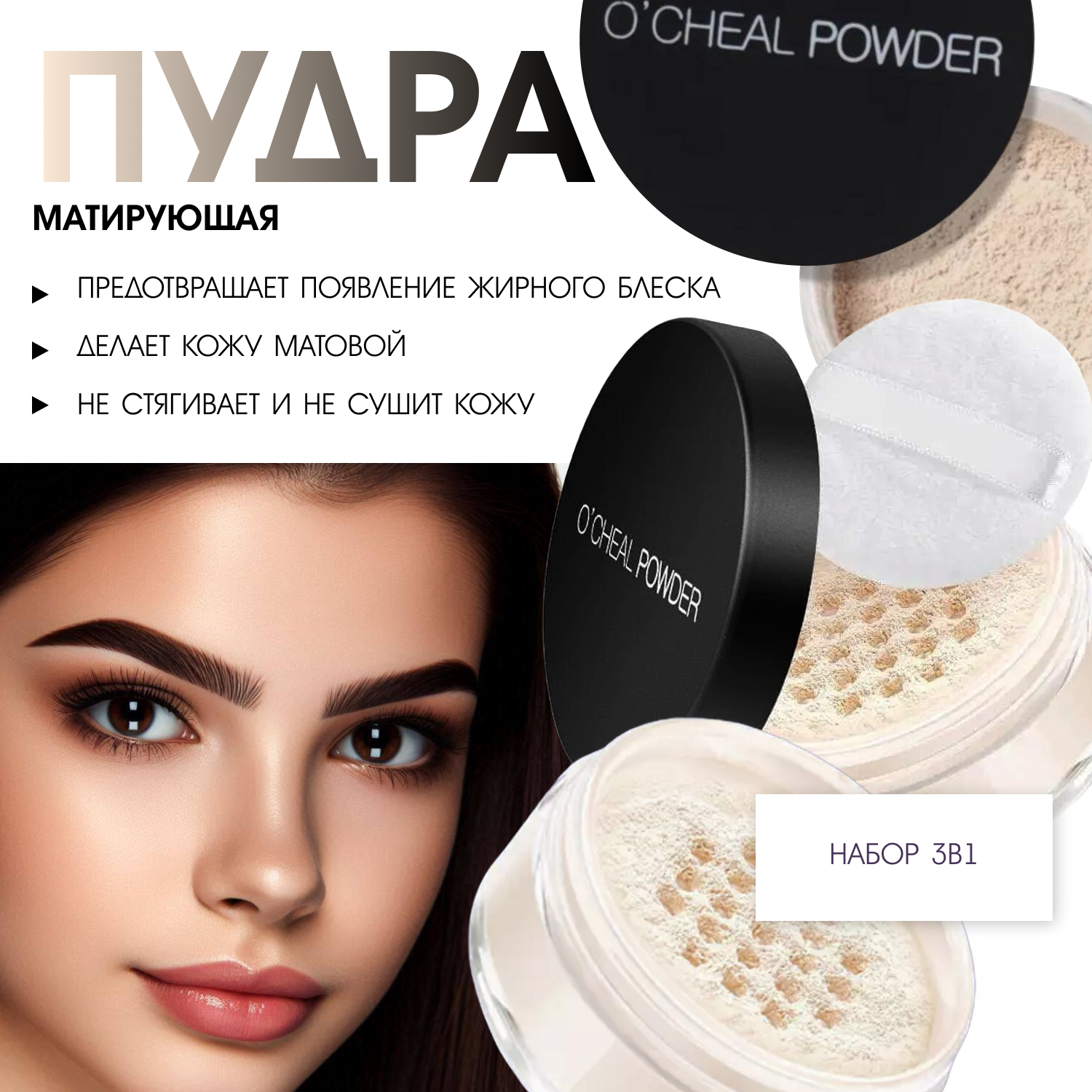 Пудра для лица GEGEMOON O'cheal, матирующая, водостойкая интересное:
