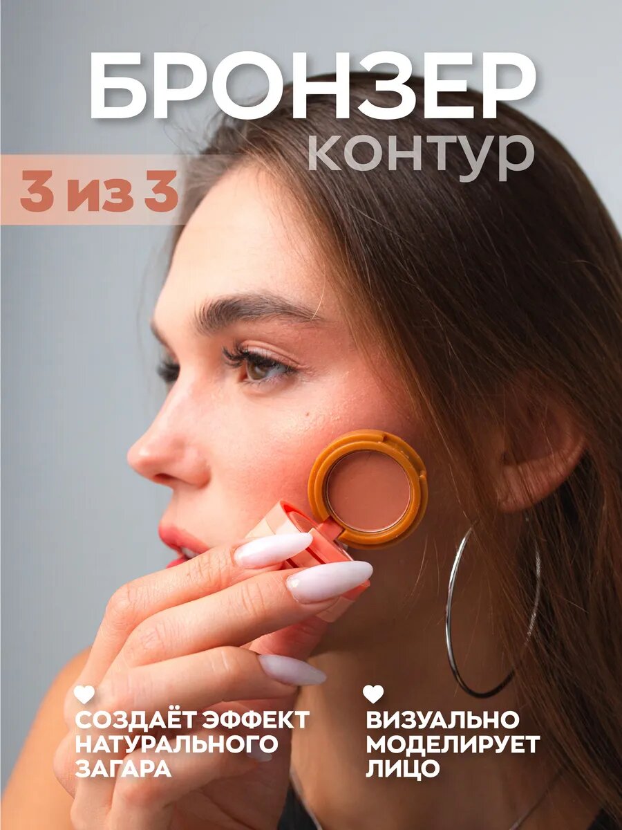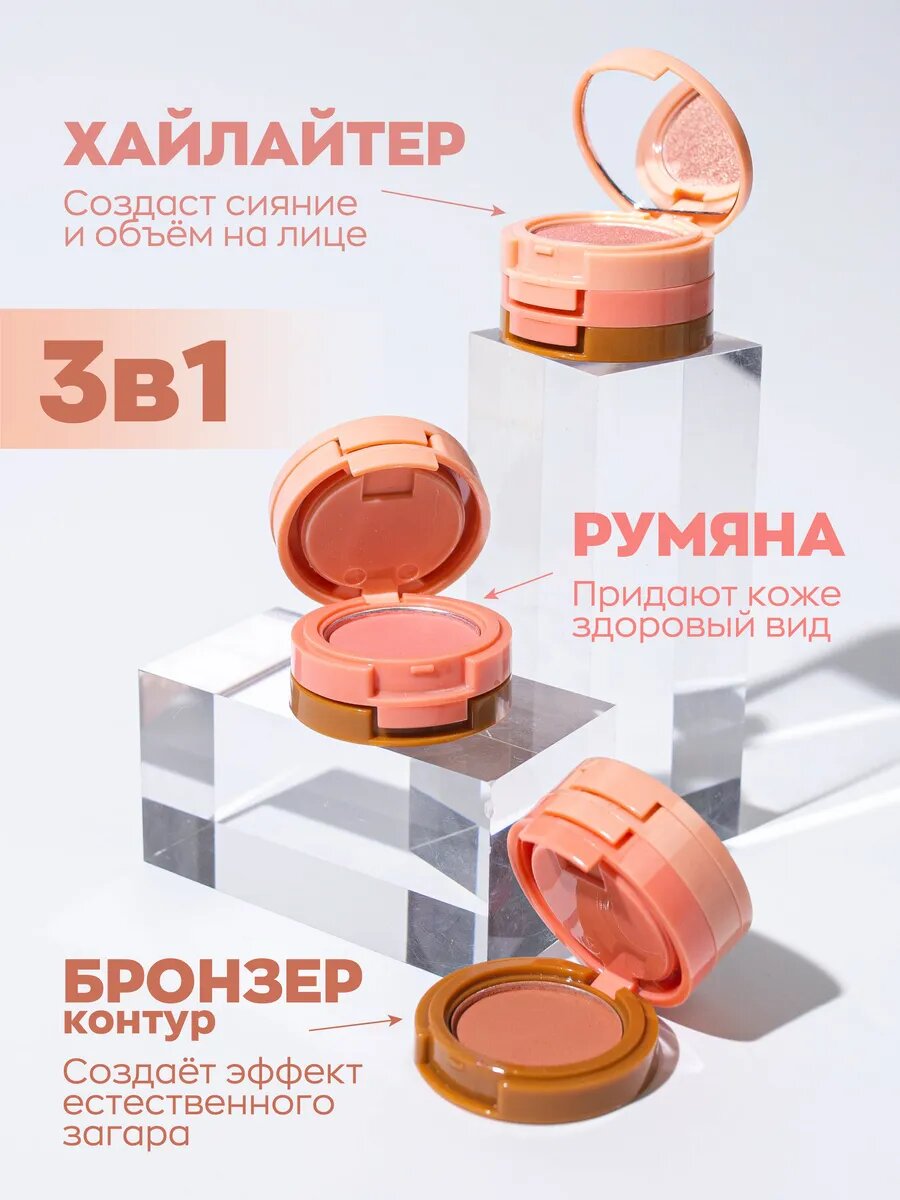 Палетка "Румяна+Бронзер+Хайлайтер" 3в1, цвет розово-коралловый интересное: