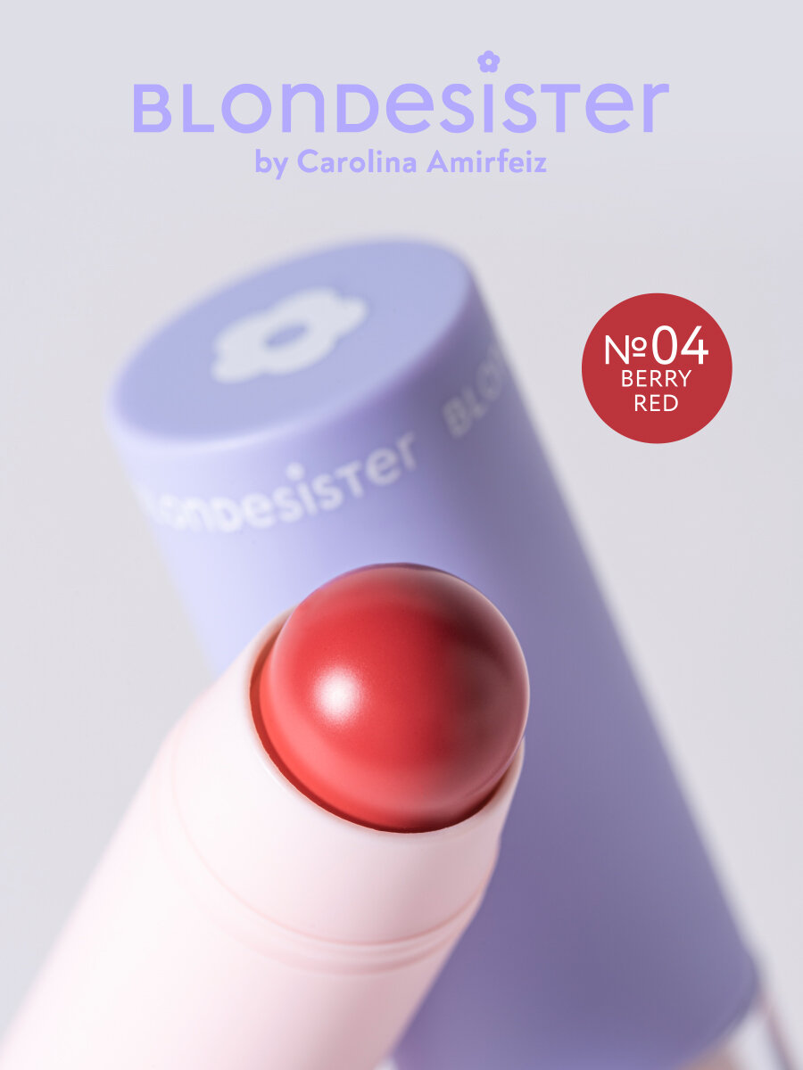 Румяна - помада для лица 2 в 1 BLONDESISTER LIP OR CHEEK тон 04 berry red кремовые интересное: