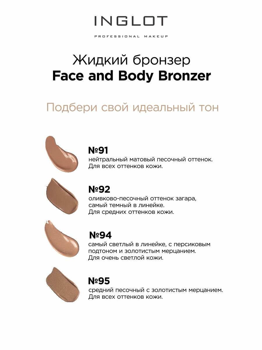 Крем с эффектом загара для лица и тела INGLOT лоcьон бронзер AMC Face and Body Bronzer №91 интересное: