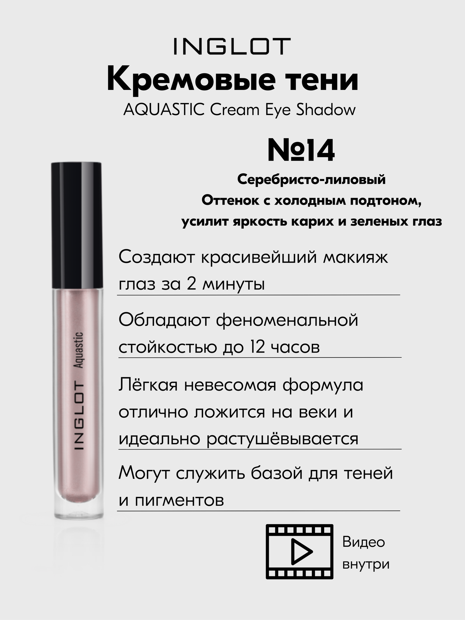 Тени для век INGLOT жидкие кремовые AQUASTIC Cream Eye Shadow №14 интересное: