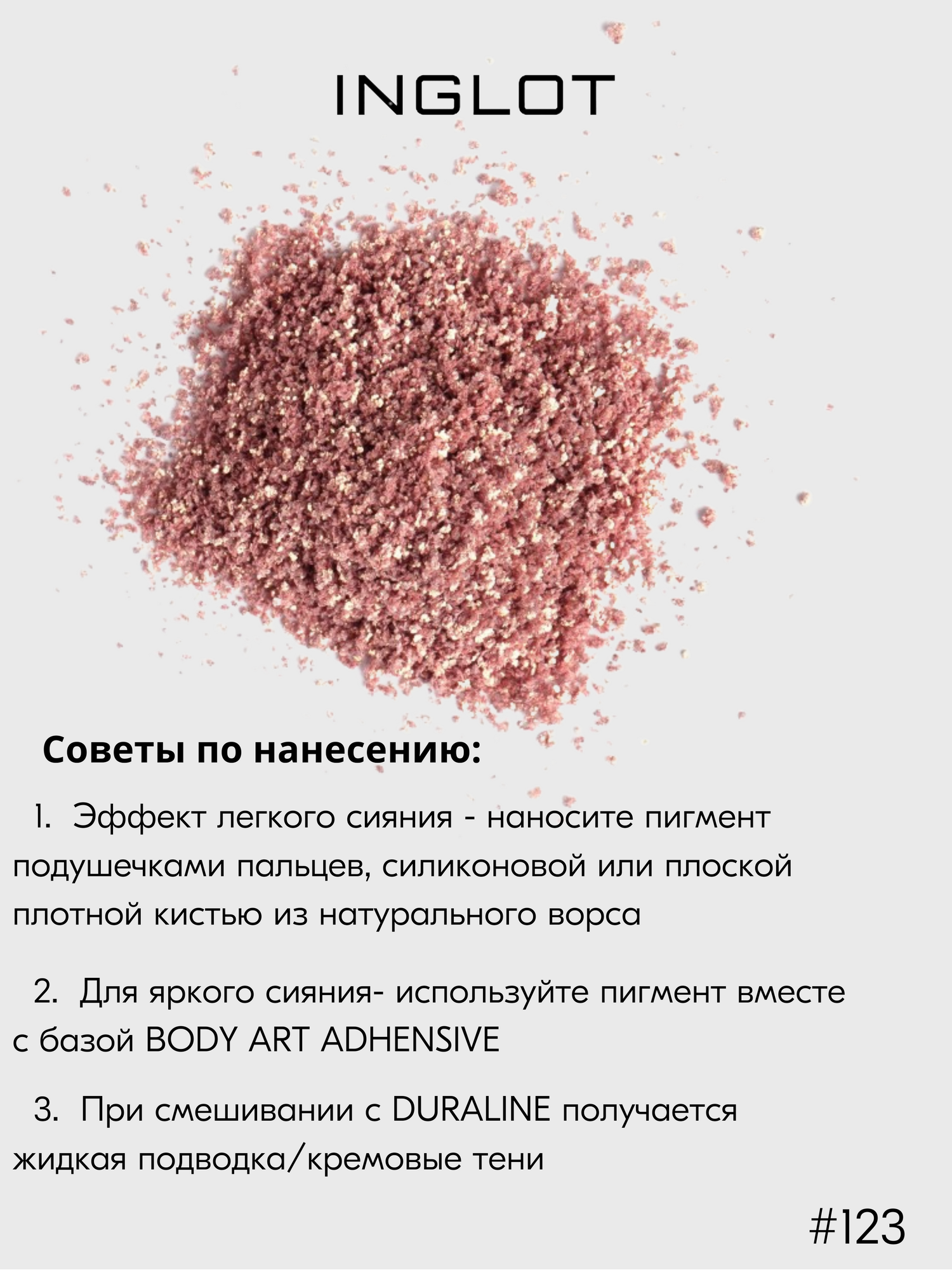 Ниже Вы можете прочитать отзывы на Пигмент INGLOT рассыпчатые сияющие тени для век AMC PURE PIGMENT EYE SHADOW №123, ознакомится с подробными характеристиками, посмотреть интересные обзоры и фотографии на Пигмент INGLOT рассыпчатые сияющие тени для век AMC PURE PIGMENT EYE SHADOW №123.