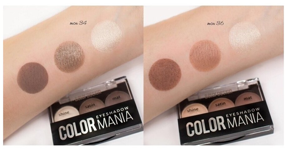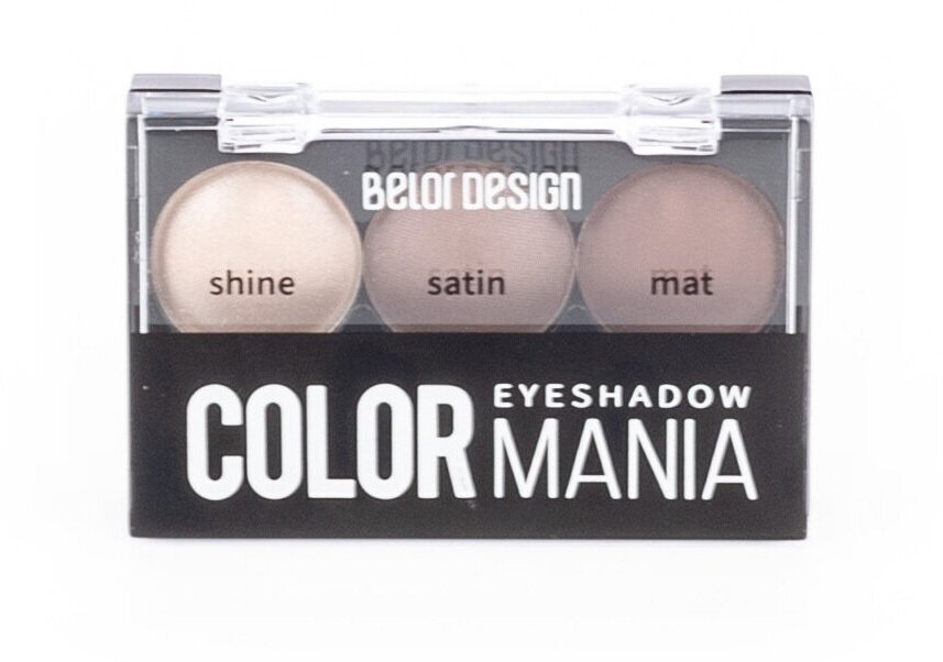 Тени для век Belor Design COLOR MANIA, тон 34 кремовые, 3 цвета, с аппликатором
