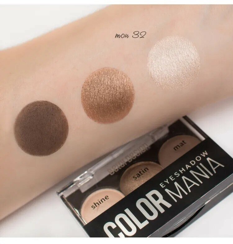 Тени для век Belor Design COLOR MANIA, тон 34 кремовые, 3 цвета, с аппликатором