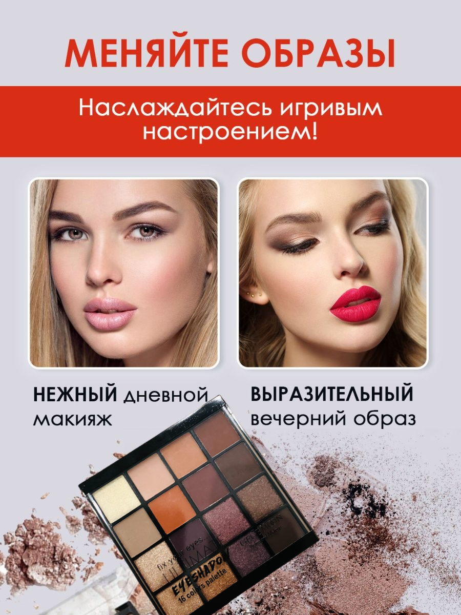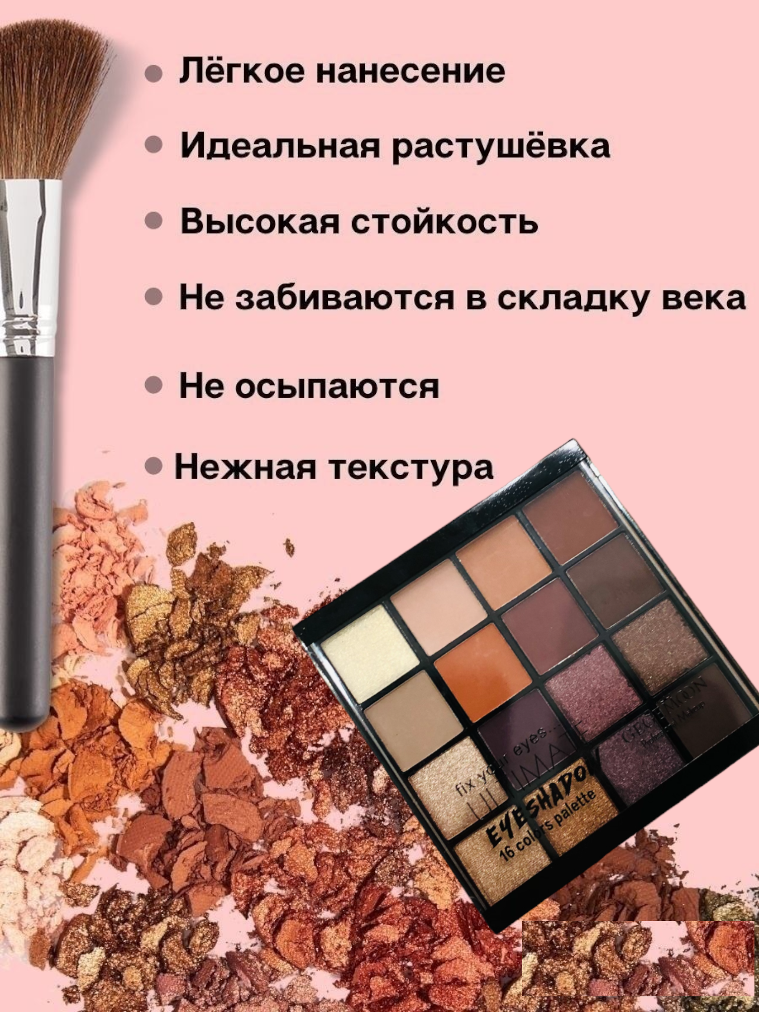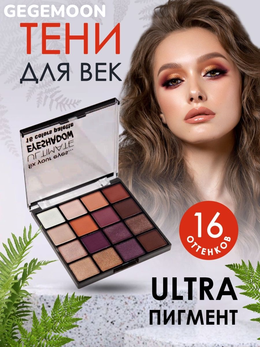 Палетка теней для век 16 цветов GEGEMOON fix your eyes ULTIMATE №01 интересное: