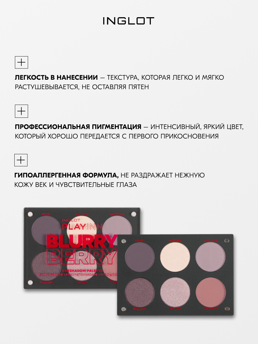 Профессиональная палетка теней базовые цвета INGLOT Eyeshadow Palette BLURRY BERRY, 6 оттенков интересное: