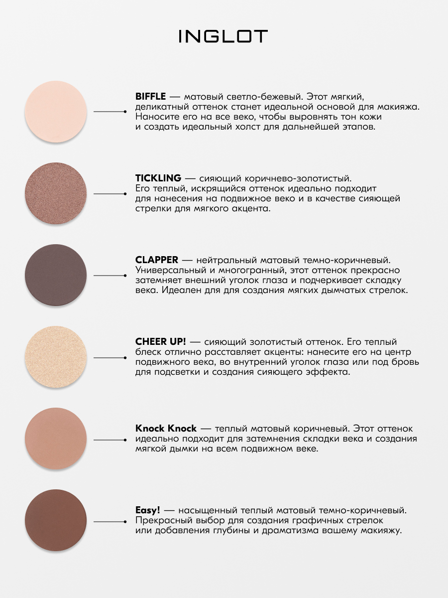 Профессиональная палетка теней базовые цвета INGLOT Eyeshadow Palette FIZZY TOFFEE, 6 оттенков