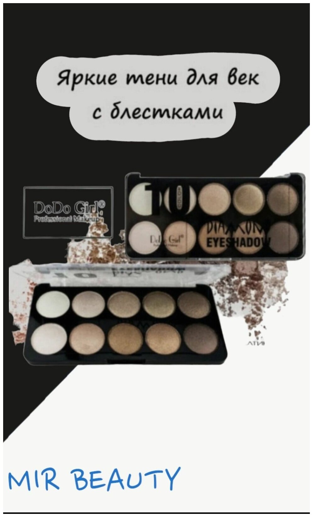 DoDo Girl 10 colors / Тени для глаз, палетка теней для век 10 цветов, шиммеры, сатиновые, натуральные интересное: