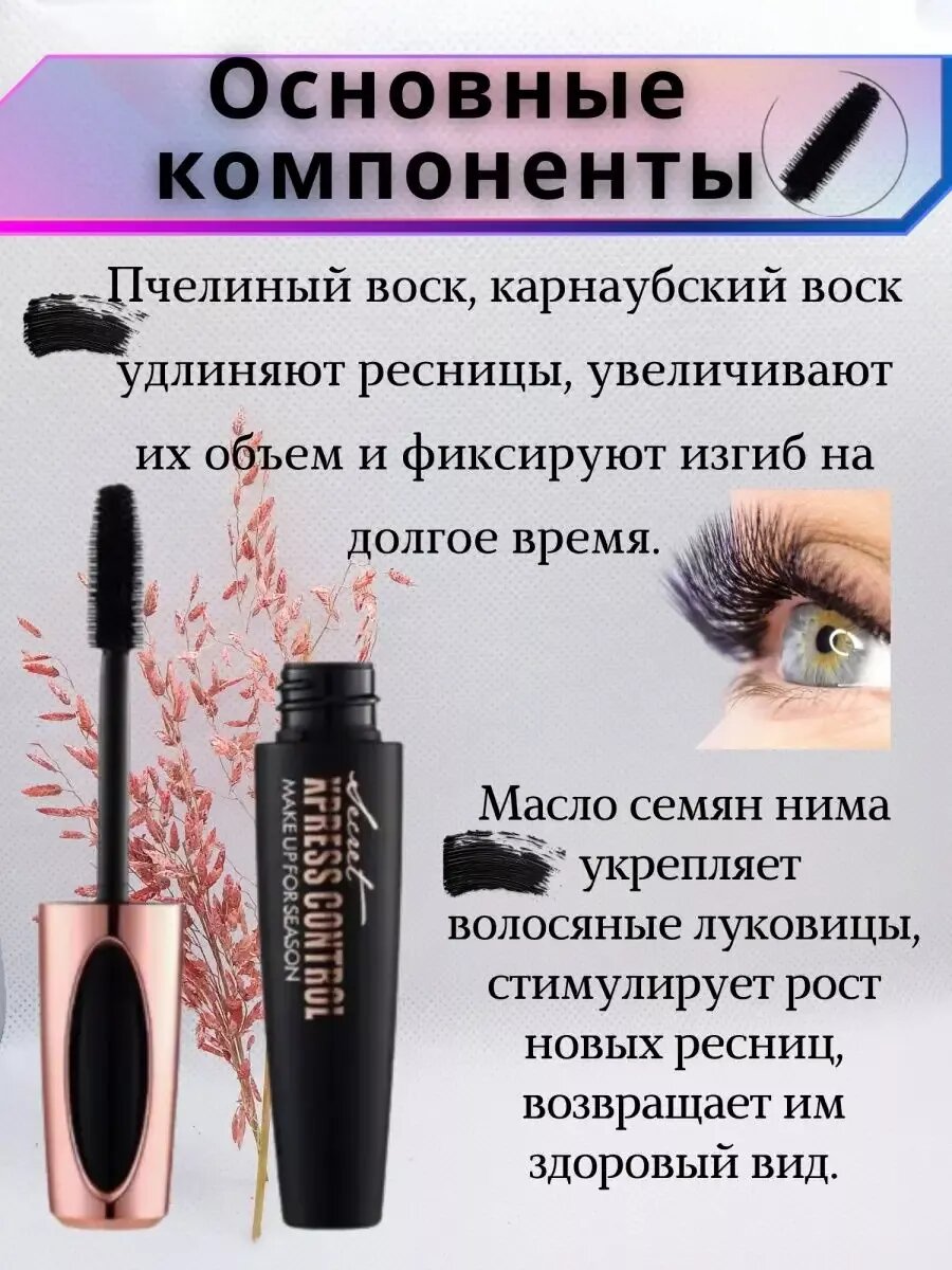 Тушь для ресниц чёрная объем и удлинение водостойкая 4D интересное: