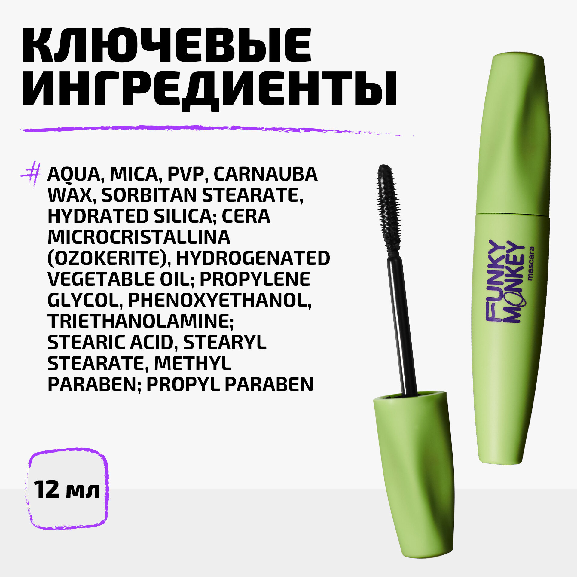 Funky Monkey Тушь для ресниц суперобъемная Hyper volume mascara тон 01 черный интересное: