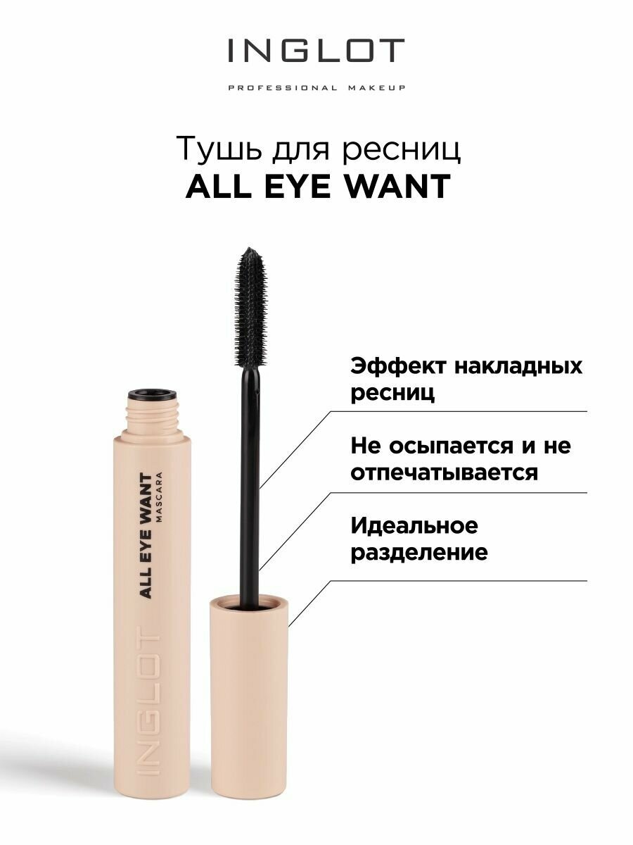 INGLOT Тушь для ресниц All eye want mascara удлиняющая объемная интересное: