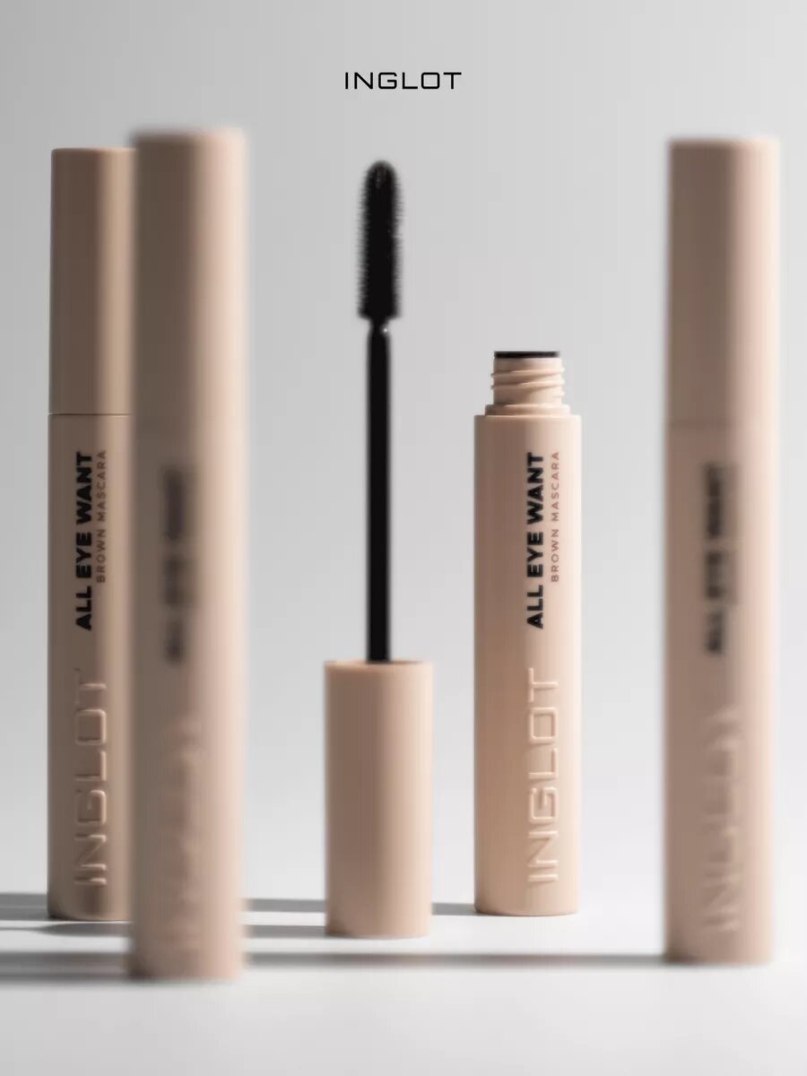 Тушь для ресниц коричневая INGLOT мягкий объем ALL EYE WANT BROWN MASCARA интересное: