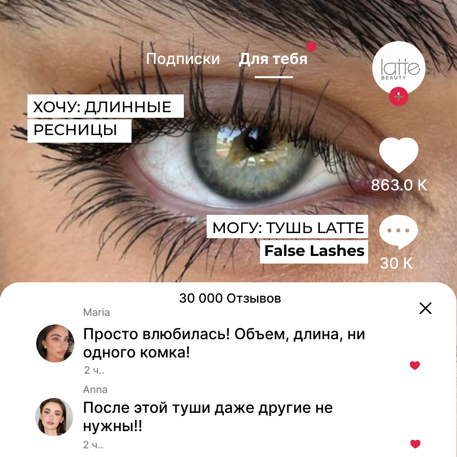 Тушь для ресниц Latte Beauty, объем и удлинение, гипоаллергенная, Италия интересное: