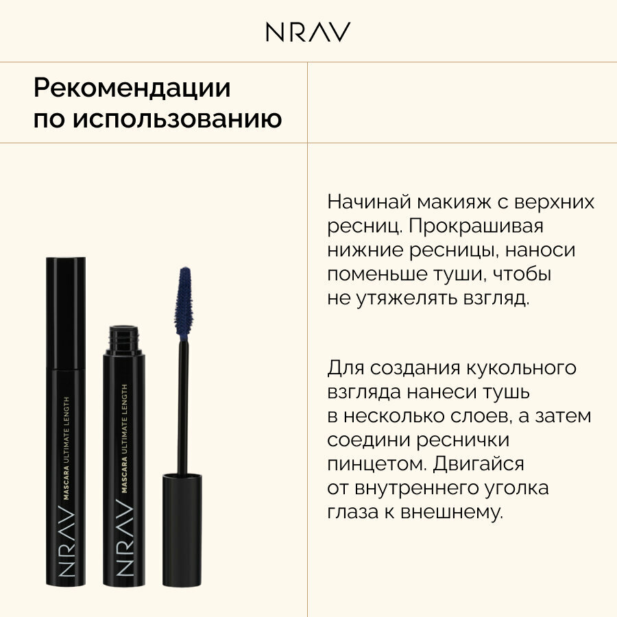 Тушь для ресниц NRAV удлиняющая, ультра черный 9,3 мл