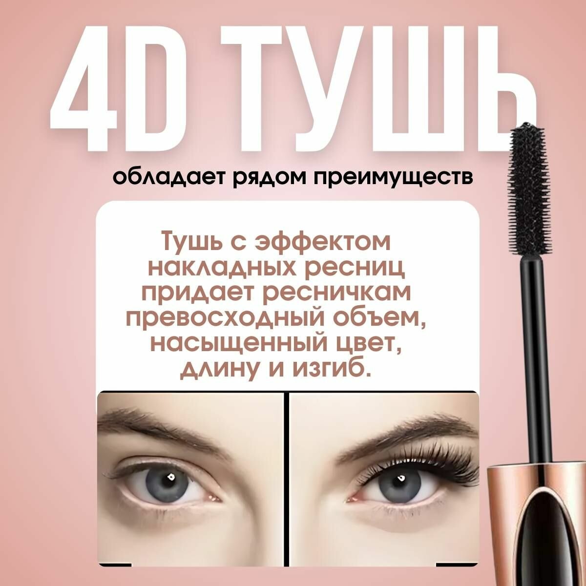 Тушь для ресниц удлиняющая водостойкая 4D суперобъем
