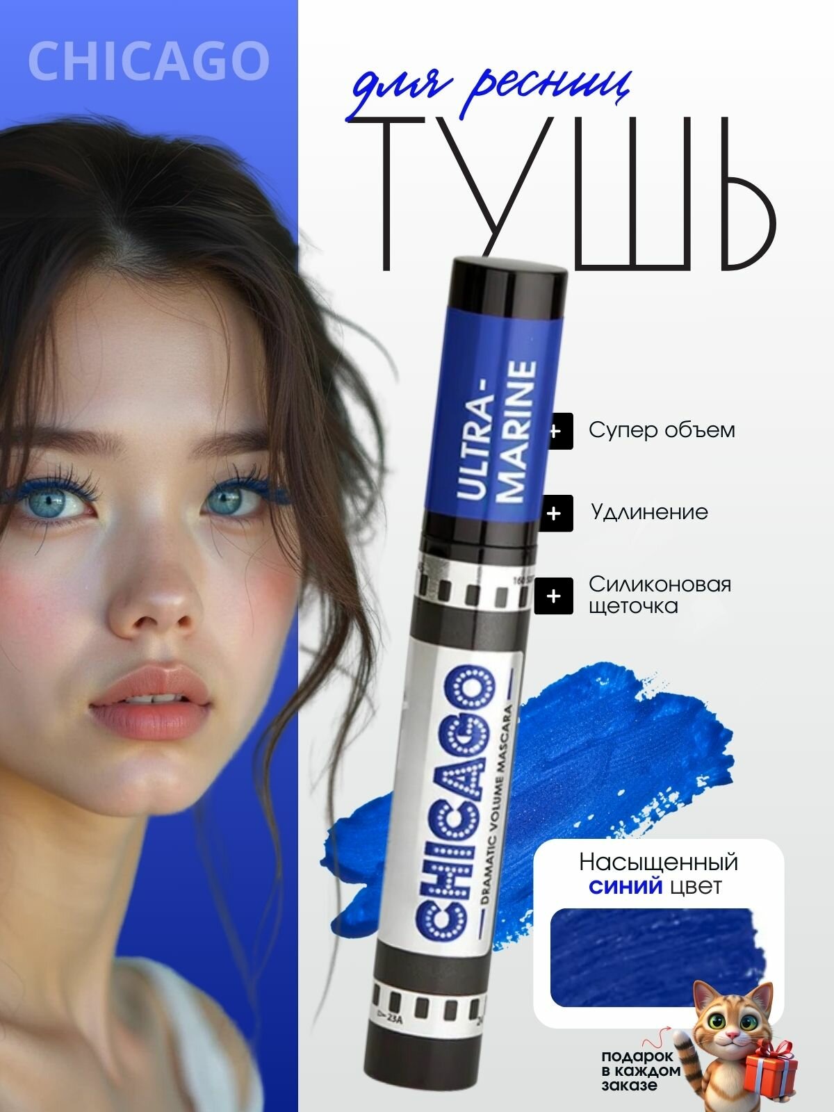 Тушь для ресниц объемная синяя CHICAGO интересное: