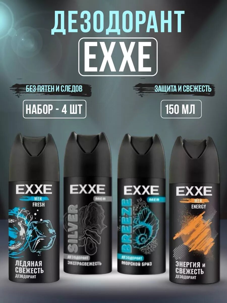 Дезодорант EXXE, ассорти, свежесть и защита 48 ч, 150мл, 4шт
