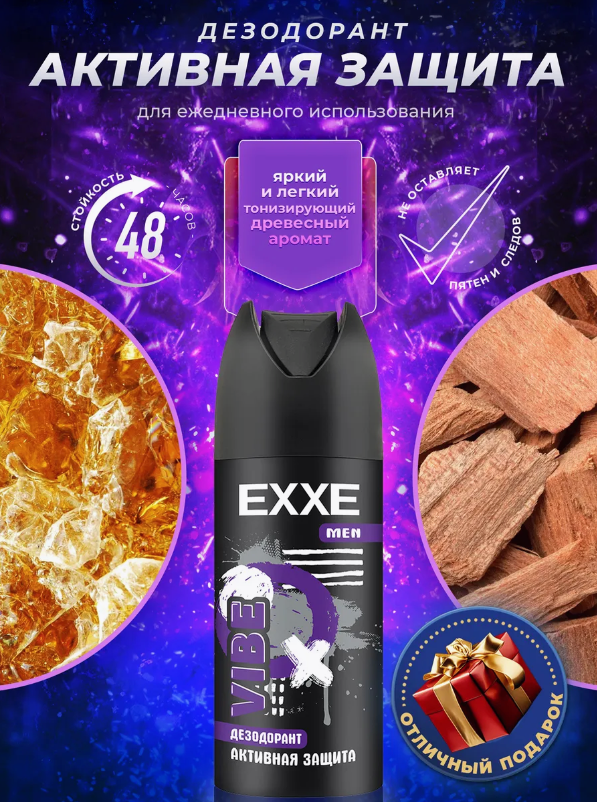 Дезодорант EXXE Vibe, спрей, 3шт, 150мл, антибактериальный, комплекс витаминов