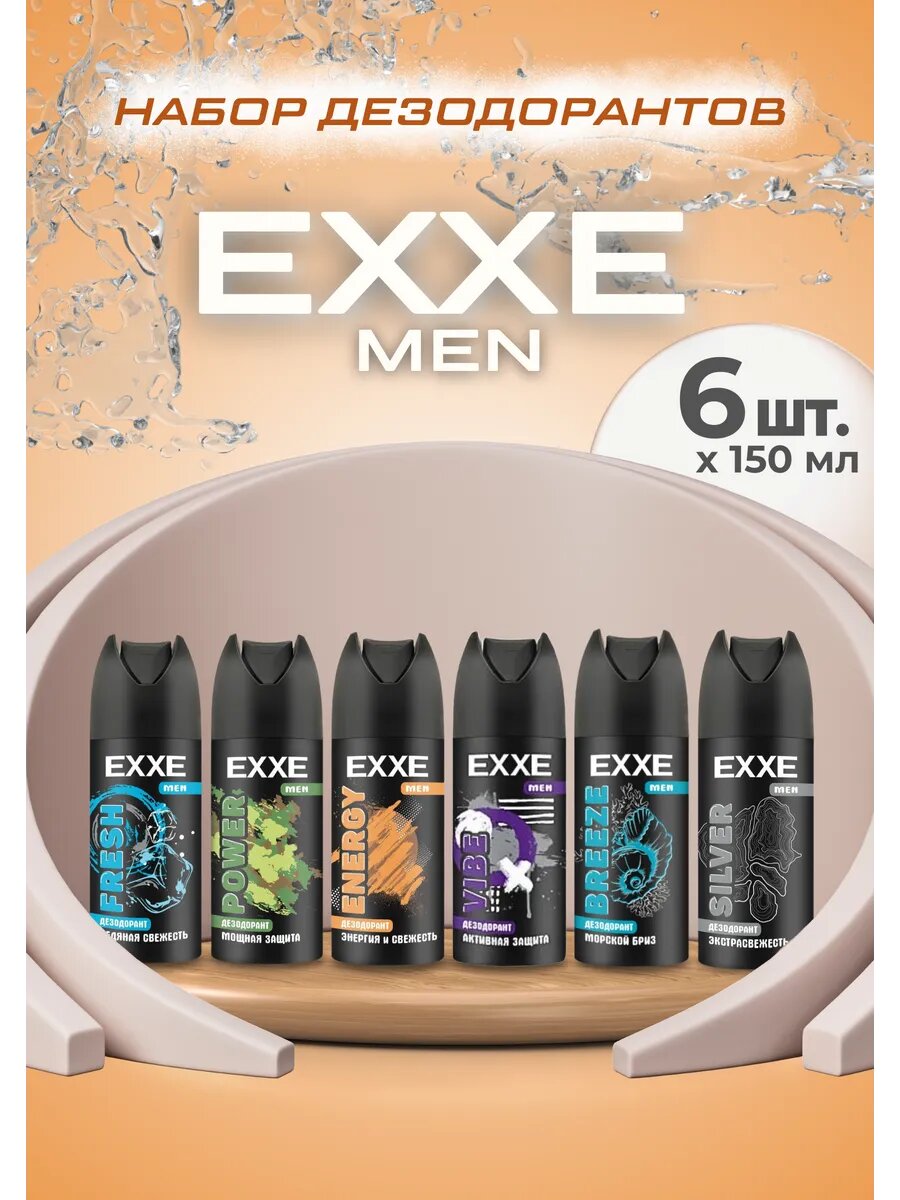 Набор дезодорантов EXXE, спрей, 6шт по 150мл, взрыв энергии, антибактериальный, для черного и белого