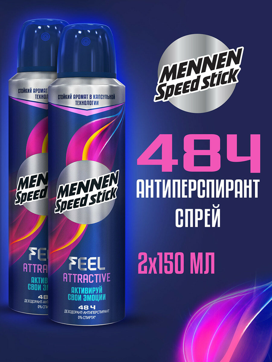Дезодорант мужской антиперспирант спрей Mennen Speed Stick FEEL ATTRACTIVE,150 мл (2 шт) интересное: