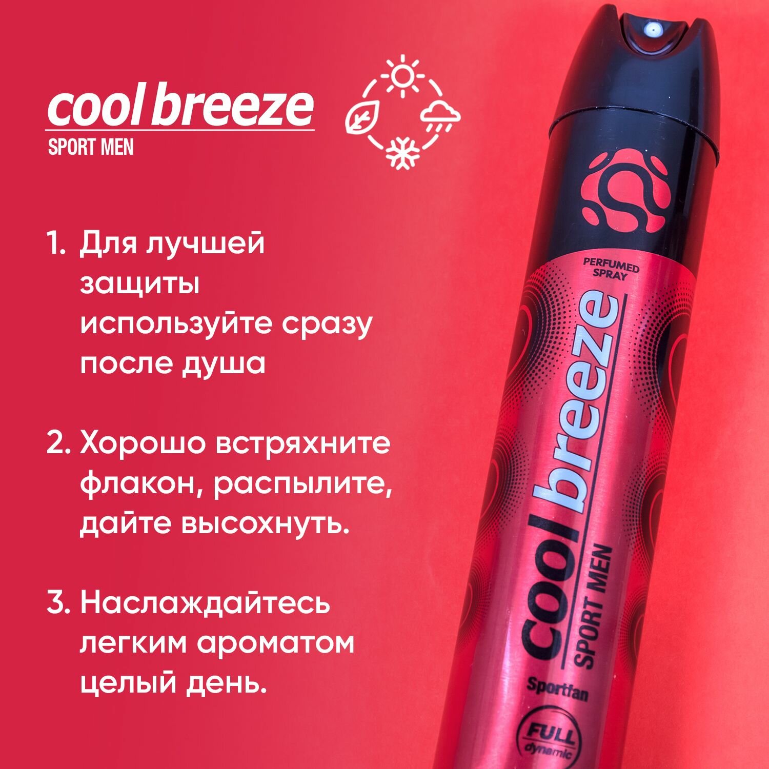 Дезодорант мужской спортивный COOL BREEZE Sport Men Quantum Energy 200 мл Для спорта, парфюмированный цветочно-древесный